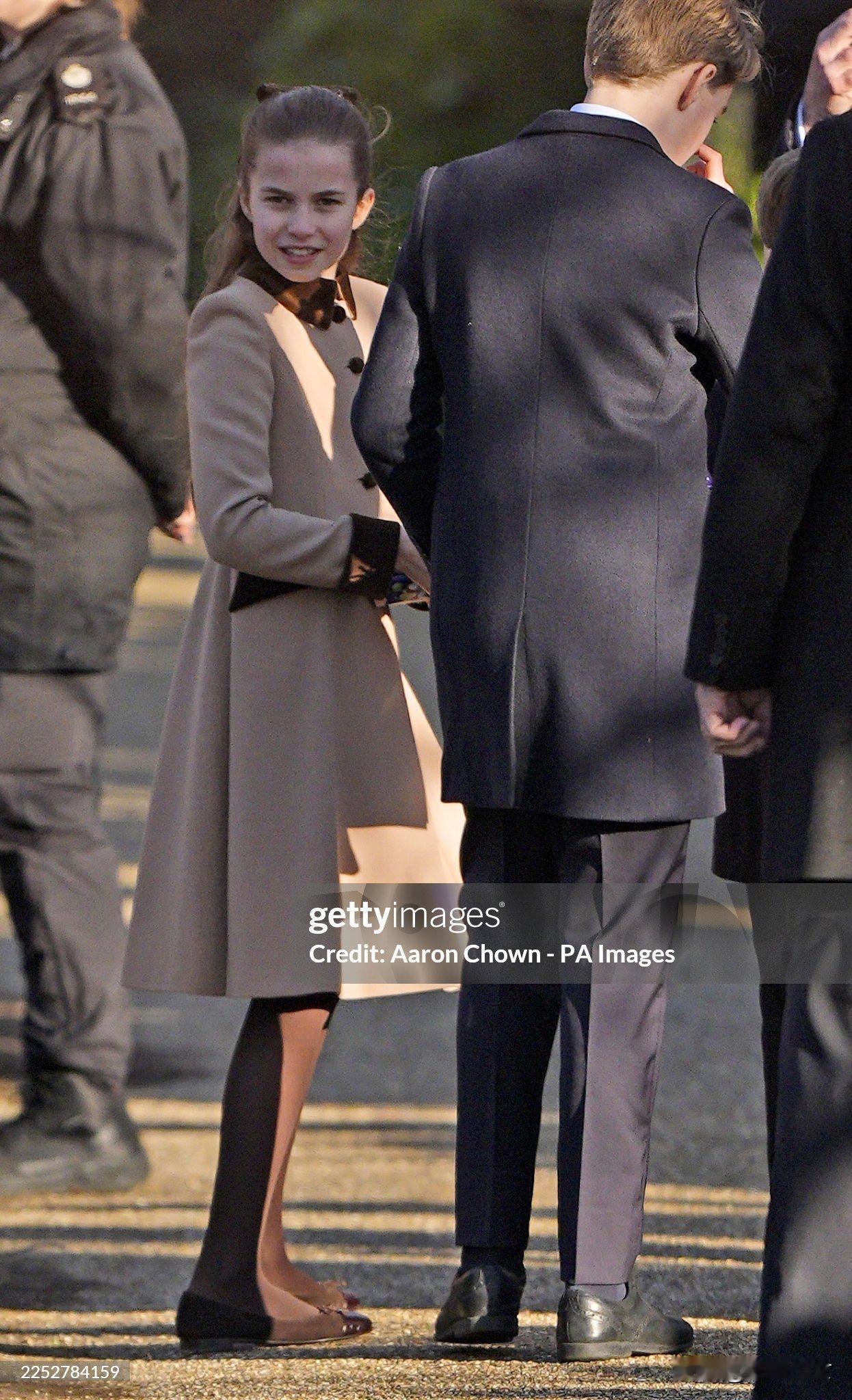 哇夏洛特公主现在好有气质好漂亮啊! 今天又是一年一度的英国王室参加圣诞节礼拜的日子了,今天到的人还是比较齐全的,除了查尔斯卡米拉,大家都期待的威廉凯特,还有三个孩子也都来啦! 夏洛特公主今天穿了一件卡其色大衣,搭配同款色系打底裤,尤其是第二张照片,看起来真是婷婷玉立的大姑娘啦! 路易斯王子也长大了不少不再调皮了,不过依旧可爱! 其他王室成员,包括安妮公主,安妮公主的女儿扎拉一家,爱丁堡公爵夫人和两个孩子,也有出席。 此外,令人关注的是,前一段时间被剥夺头衔的安德鲁王子的两个女儿,碧翠丝公主和尤金妮公主也来了,看起来他们跟其他王室成员的关系还不错,没受影响。