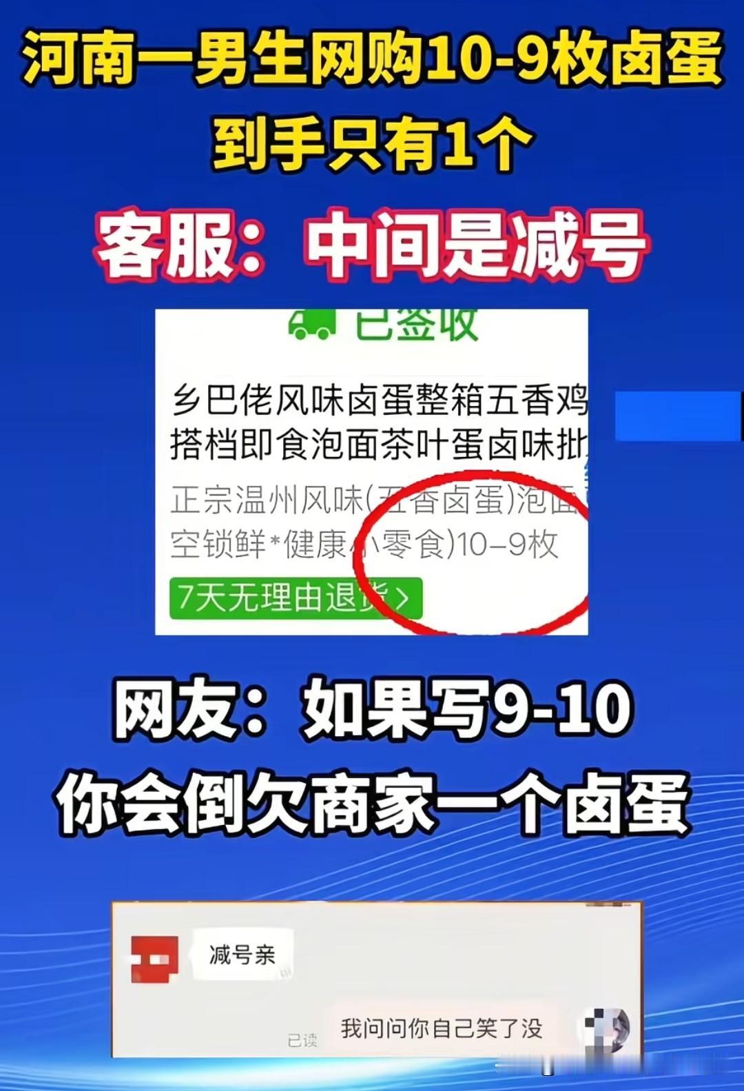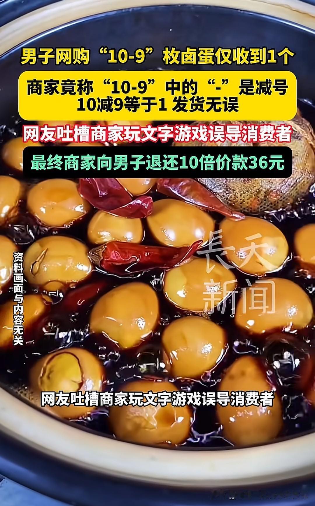 这就是3.6元的10-9枚的卤蛋,是不是觉得这个价格能买到至少9枚卤蛋超级划算呢?不过这是一个卤蛋的价格,符号是减号的意思,幸亏不是9-10个,要不然该买家发货了。 估计商家也是没办法,要知道平台比价推流机制,如果不标低价就会没流量。对买家而言,尤其是相信天上掉馅饼的买家,3.9元想买10枚卤蛋,还包邮,这卖家是做慈善的吗?明知这是不可能的事,但买家还是会相信奸商的文字游戏。 因为平台的比价机制,因此很多商家开始在文字上下功夫,所以在购买之前一定要先咨询清楚,只要商家说了,以后想维权就简单轻松多了。