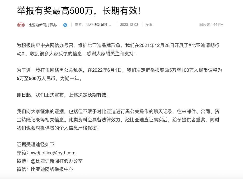 12月25号,比亚迪法务部发布公告,比亚迪之前起诉的自媒体“龙哥讲电车”、“满格电新能源”等账号,已出判决结果:赔偿200万元。 比亚迪品牌及公关处总经理李云飞又再次提到对黑公关黑媒体零容忍,一定会通过法律手段,捍卫品牌正当权益。 过往已经有典型案例,例如: ①自媒体“王悟空说车”黑方程豹被判赔偿31.38万元并公开道歉。 ②自媒体博主“龙猪-集车”因长期针对比亚迪发表侮辱、诋毁的言论,2024年底被判赔偿201.87万元并赔礼道歉和删除言论。 近几年网络上针对车企的恶意诋毁、虚假造谣行为很多,包括比亚迪在内的众多车企均在积极采用法律手段维护自身权益。目前为止,比亚迪从2021年开始的黑公关悬赏,奖励提升至5万~500万元后,仍然在有效。 值得注意的是,比亚迪至今对多个黑号发起的诉讼,都胜诉了。对于进行创作的自媒体来说,通过抹黑车企获利,终将以败诉赔偿告终。在今年11月17号之后,新华社发文批判车圈“拉踩同行”“恶意抹黑”等非理性竞争乱象,更是堵死了车黑的道路,央视新闻《法治在线》节目对“龙猪-集车”侵权案进行深度报道,但凡是有点觉悟或者敏感度的人都能发现,国家接下来会对这一类现象进行严格管控,也会对这一类人群进行打击。 因为这群人已经成了我国新能源车产业高质量发展的障碍。说直白点,就是在和国家作对。而且支持黑公关的车企,也是在和国家作对。 目前国家想要中国车企做的事情,并不是说不允许做营销,而是不要把精力都放在营销,最好是把所有时间和精力都放在研发和技术上,把中国新能源车整体水平提升到全球领先的程度,并且具有技术护城河,自主可控,让汽车制造业回归制造业。 有趣的是,当汽车自媒体难以通过做黑公关长期获利,风险变高时,那么带着不满,需要发泄的源头人群就会暴露出来,即车企高管,因此只要发现哪些车企高管炮轰友商,就能知道哪家车企到底有没有认真在打磨技术造好车。 当然这种情况也不是无法控制,因为以前就有过话说多了之后长时间被“闭麦”的世界500强的创始人,被闭麦后,我国经济仍然发展得有条不紊。因此国家不会在乎再给一个车企老板或者高管来一次“闭麦”。