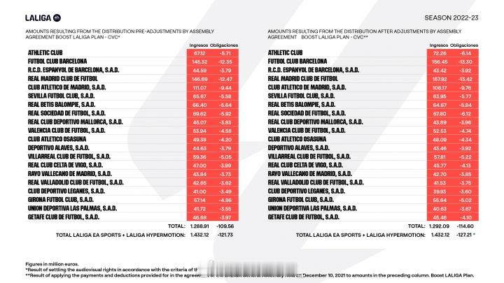 差距大!上赛季西甲仅皇萨竞转播收入上亿,英超垫底队1.1亿镑排西甲第3