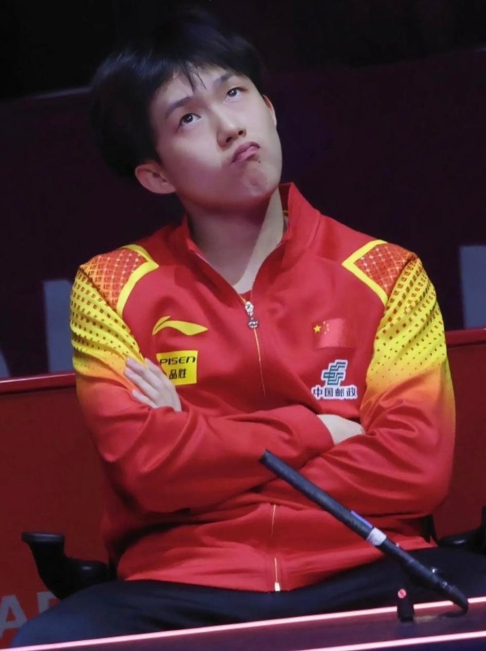 王楚钦参加南京乒超总决赛。他已经上了山东魏桥俱乐部的车。穿着他喜欢的克罗沁白色T