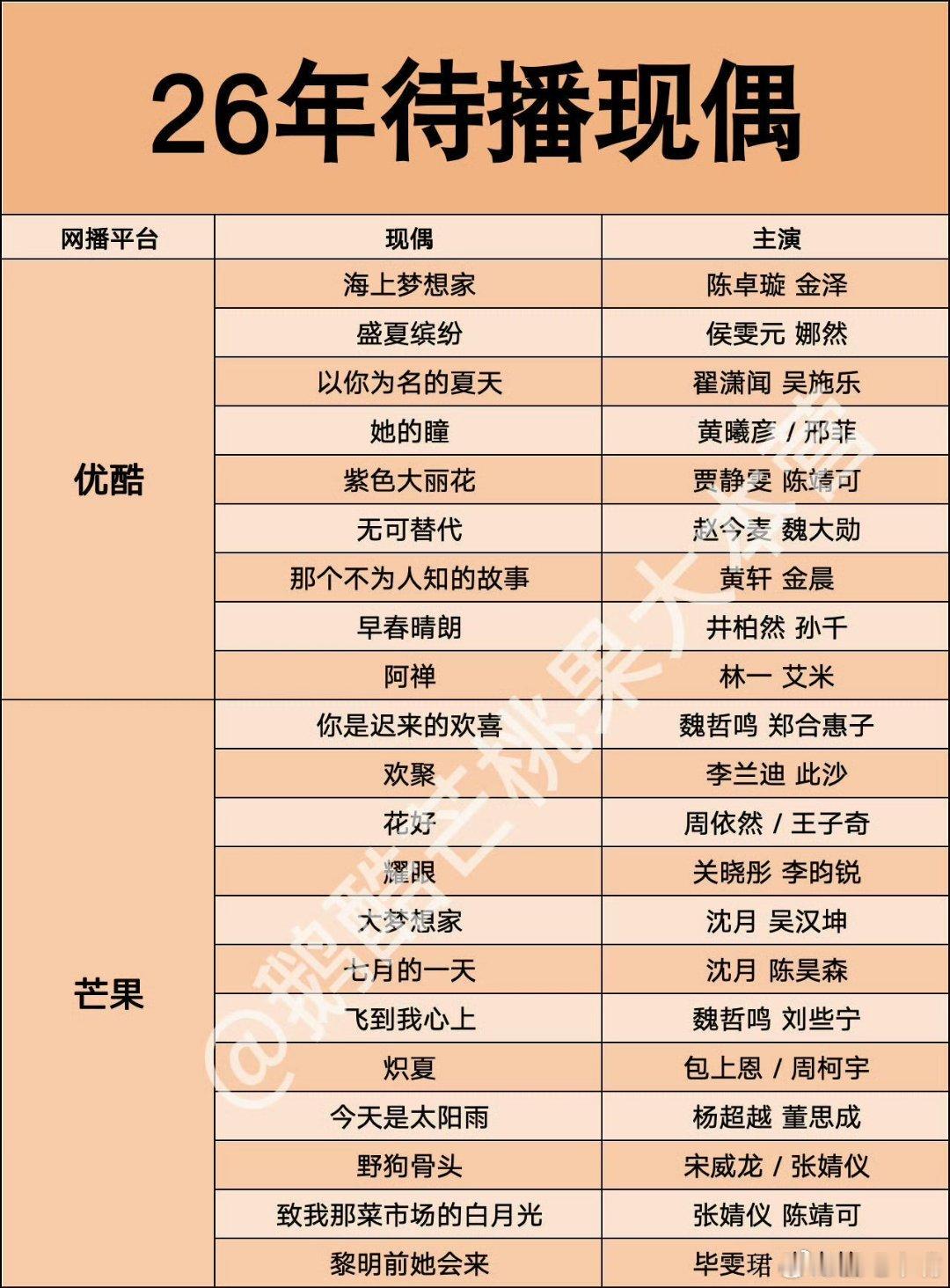 2026待播剧品鉴中哈哈来品鉴现偶吧!四大平台待播现偶!看好哪部?