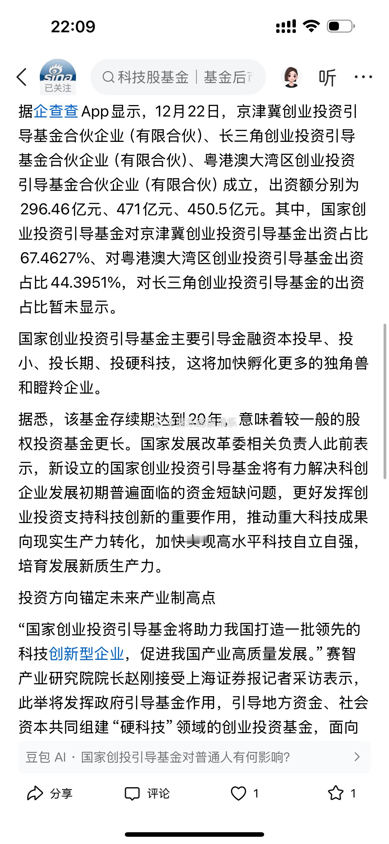 来利好了,中长期利好!这三个航母型创业基金,将撬动上万亿的投资,引导金融资本投早,投小,投长期,投硬科技,将加快孵化更多的独角兽和瞪羚企业。也就是房地产现在不行了,投资的硬科技投资热潮将在国家创业投资引导下,迎来巨大增量,利好A股市的大科技走出长牛走势~!
