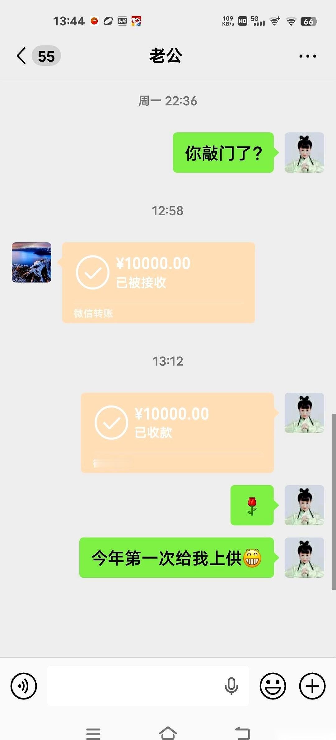 手机叮咚一声。 转账一万块。 我老公,啥也没说,年底的绩效估计是发了。 这闷葫芦,平时指望他工资卡上交,那是做梦。 一个月四千多块,七大姑八大姨的人情,一圈撒出去就没了,我也不忍心问他要。 攥着那张空卡,为了百十块钱天天吵,图啥呢? 男人嘛,兜里比脸还干净,出门腰杆都挺不直。算了,他自己拿着,心里还舒坦点。 我一个月两千五,撑着一家老小的吃喝拉撒,还好儿子懂事,每月还给我五百。 日子就这么抠抠搜搜地过。 也想过人家那种,老公月薪几万,卡随便刷的日子。 可人比人,气死人。命里没有的,别强求。 过日子,说到底过的是啥? 是钱吗?是,但又不全是。 是家里水管爆了,有人想也不想就卷起袖子去修。 是半夜娃发烧,有个人比你还急,嘴上骂着你瞎操心,脚已经往医院跑。 是冬天被窝里,有个人帮你捂得热乎乎的。 他挣多挣少,都是这个家的顶梁柱。有他在,天塌下来,好像都有人跟你一起扛着。 所以啊,看到这一万块,心里一下子就暖了。 谁有头发,也不想装秃子。他有,他真的会给你。 这就够了。 这个年,能过踏实了。