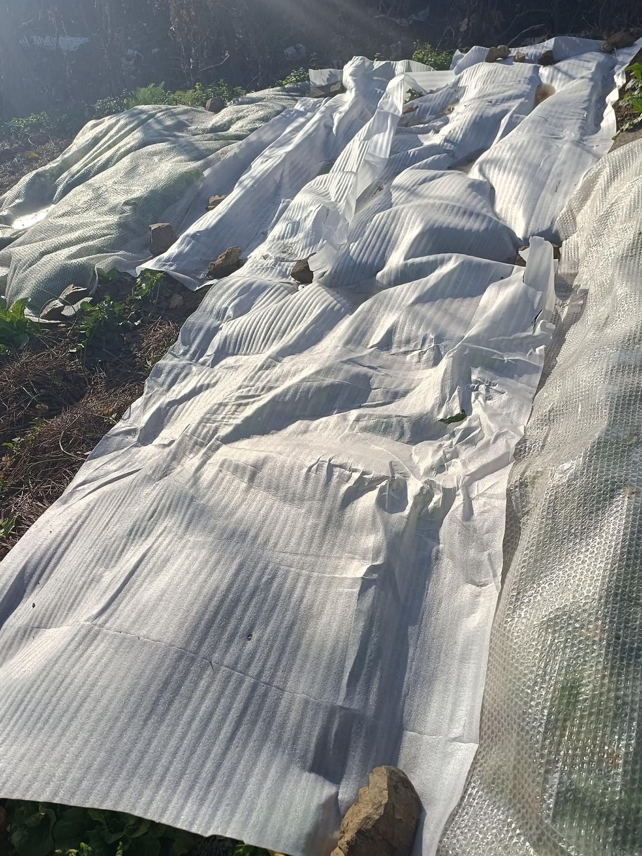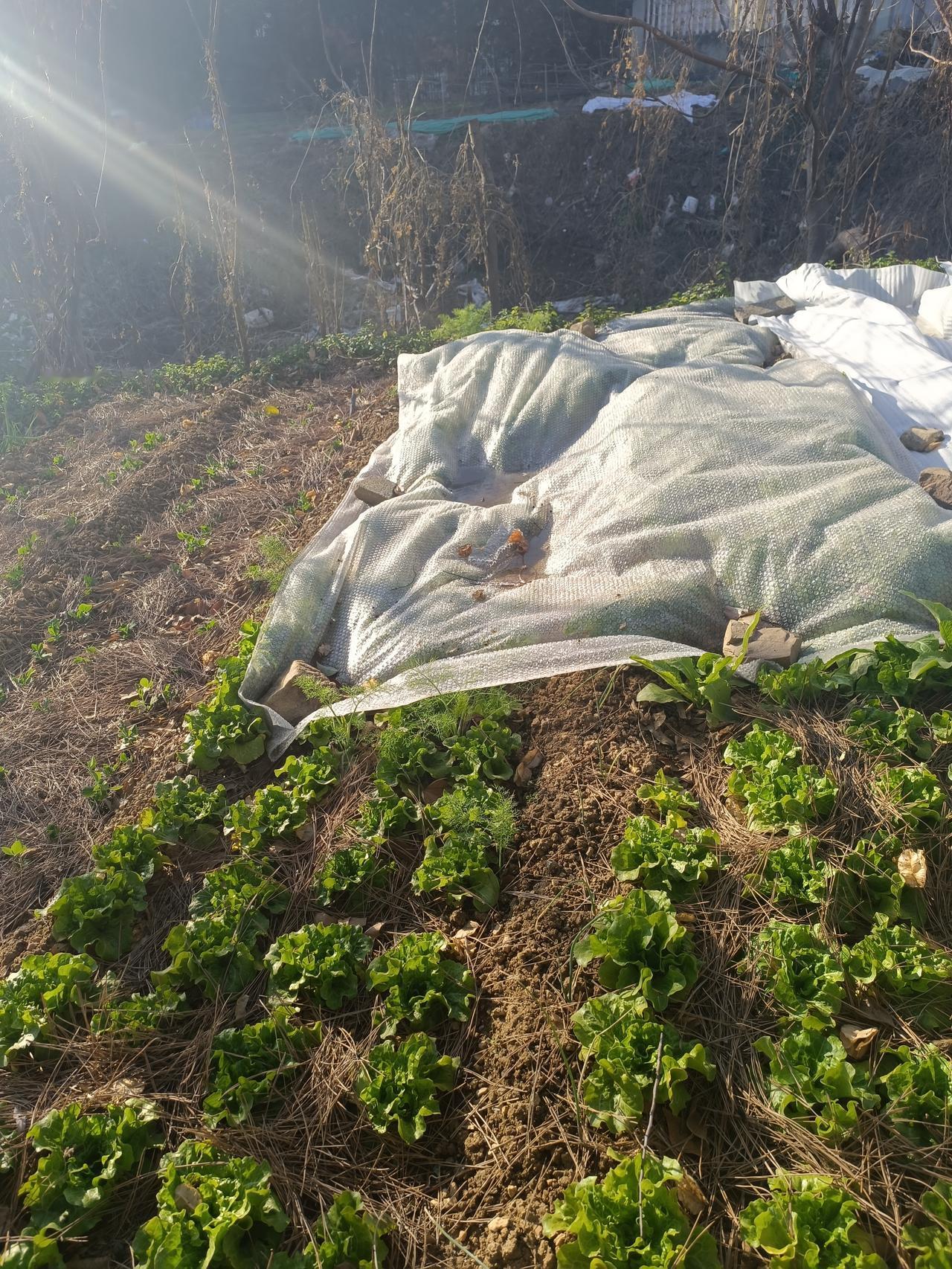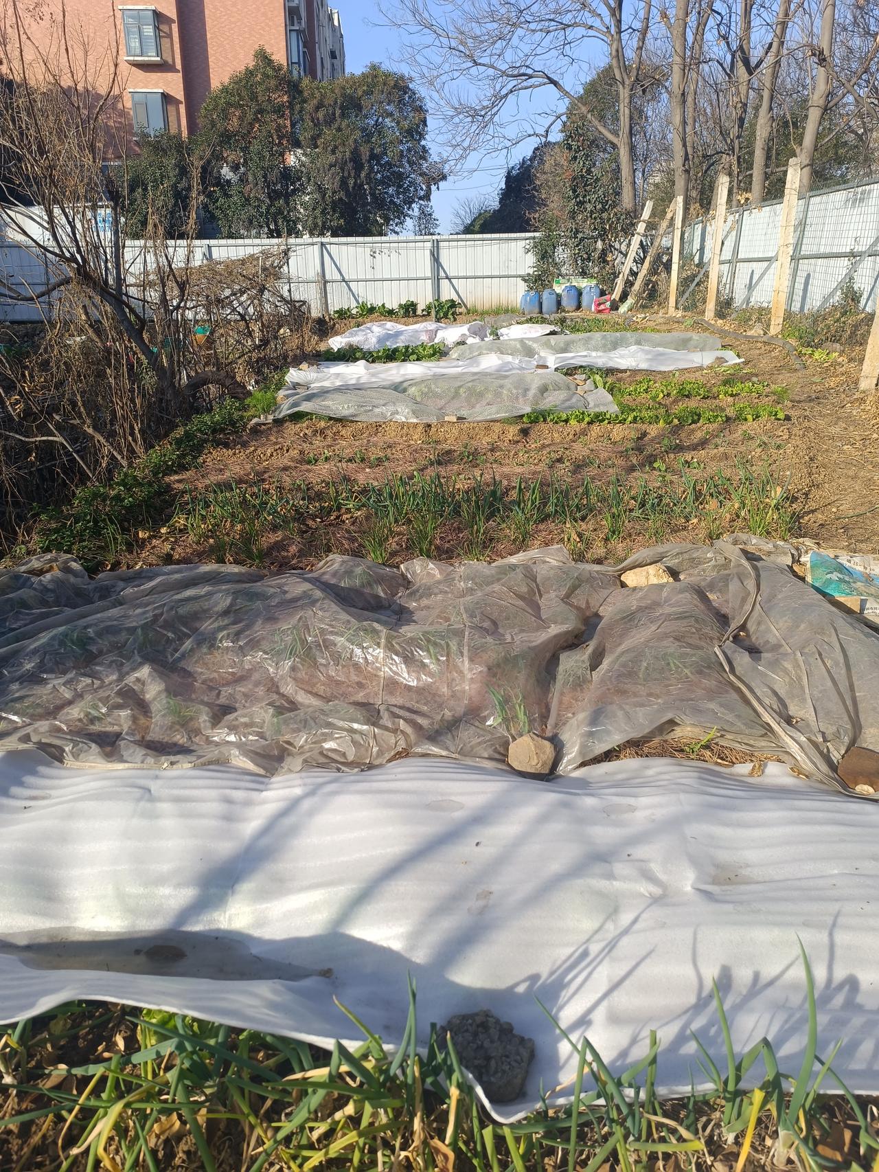 这是我家小莱园,今年冬天大部分菜都用塑料布盖上了,只有豌豆没有用塑料布盖,豌豆用松针盖了,小葱和菠菜也没有盖,这两种菜不怕冻。 白菜和萝卜最怕冻,降温前都己经盖上了,种的油麦菜和小茴香也盖好了,生菜不怕冻,盖不盖都没事。芹菜也要盖上,洋葱不用盖,一般冻不死。 冬天种菜一定要盖好,如果不管它,很多菜就会冻死,等于白忙活,这些菜到过年都可以吃了,过年时满地绿,开春又是大丰收。 别看这些菜不值钱,主要是绿色蔬菜,不打农药,可以放心吃。