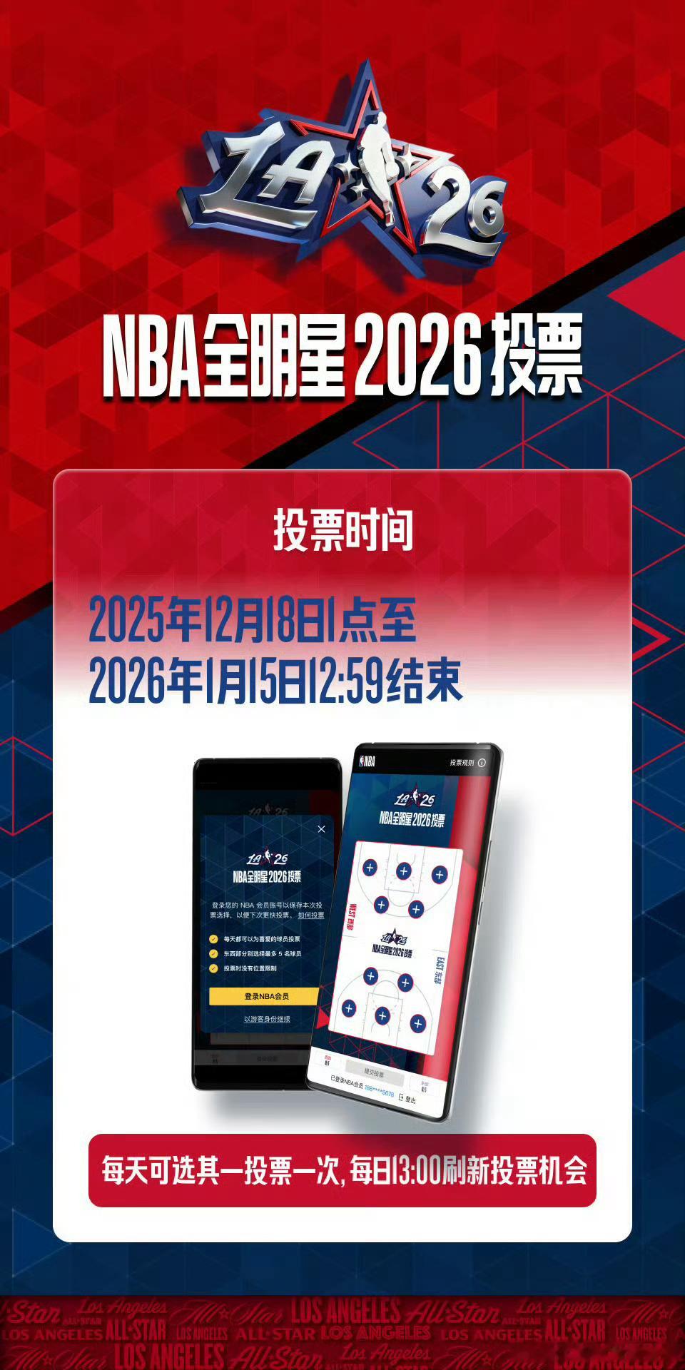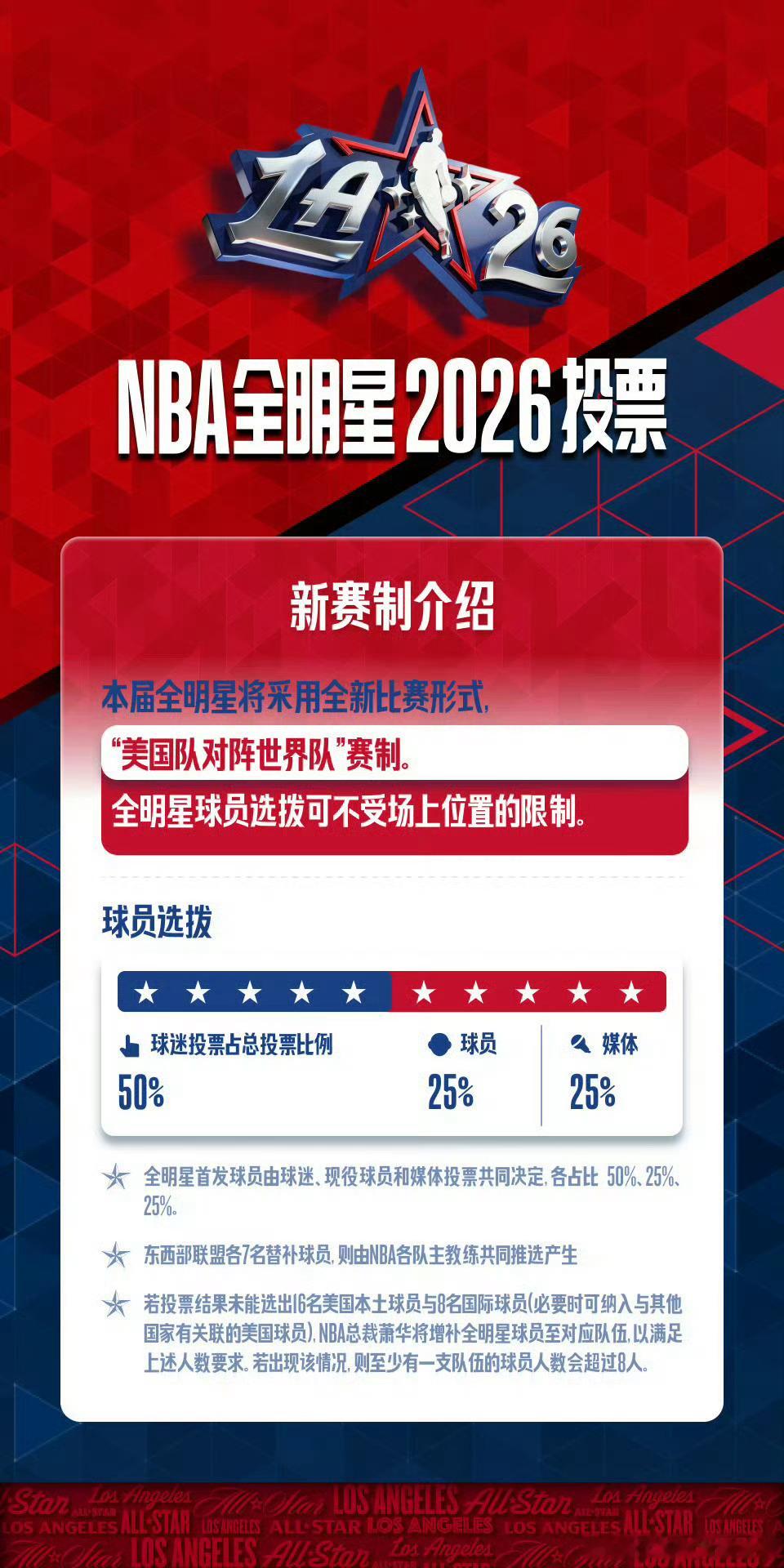 2026NBA全明星投票兄弟们,今天是NBA全明星三倍投票日,出于私心,西部5个位置我投了4个火箭球员,还有一票给了马刺的文班亚马,马刺最近3杀雷霆真是太厉害了!评论区晒出你们的全明星投票,博主将在晒出投票的评论区抽取一份NBA周边礼品。如果还有不知道去哪投票的朋友,请往下看:网页链接休斯顿火箭休斯顿火箭