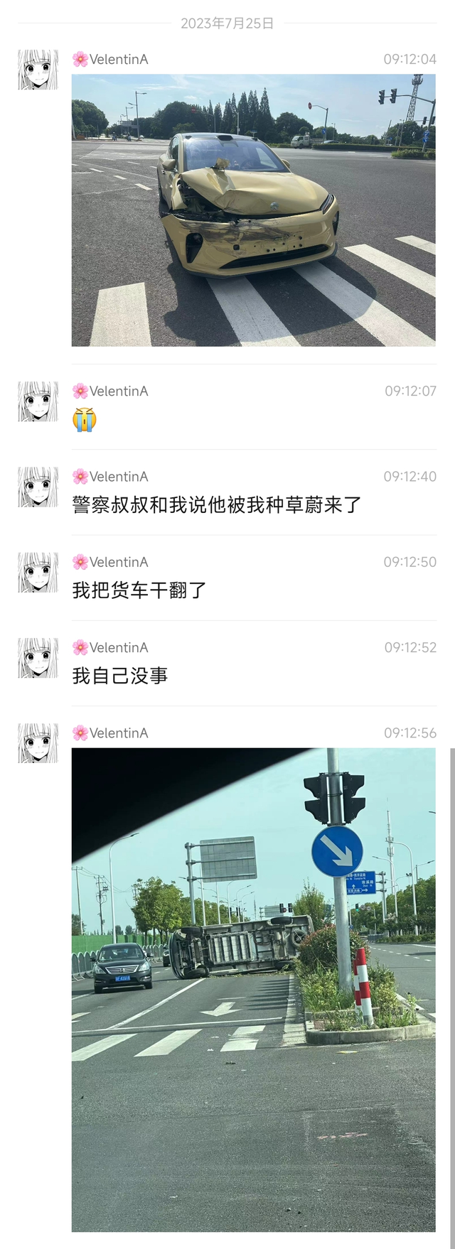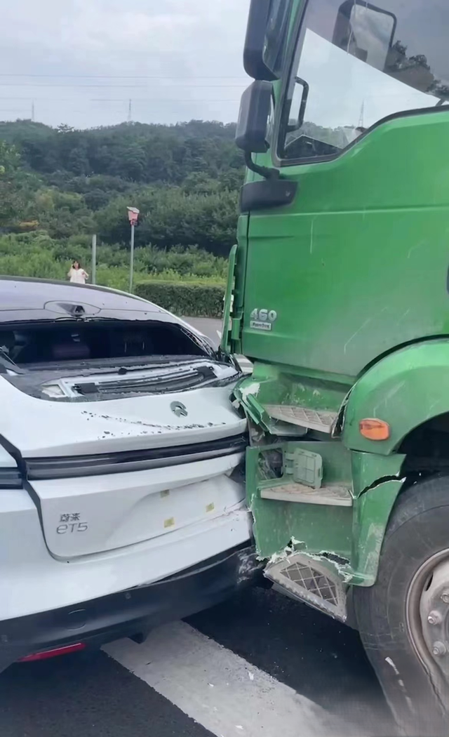 蔚来干翻货车 一、事故分析。蔚来et5直接撞翻货车,a柱未变形,驾驶人员安全,货车直接翻滚在地。 二、车主报平安,警察夸赞车主汽车质量好,被种草。 三、此前就有类似案例,车身刚度得到验证,保证车主安全。(如图四)