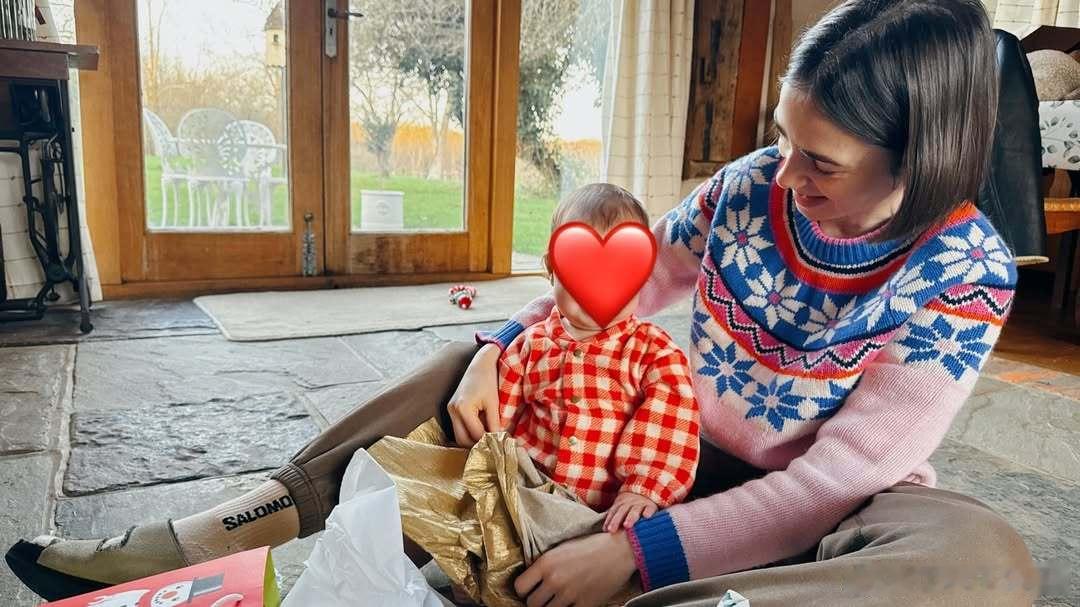 lily collins莉莉柯林斯晒圣诞节家庭照,今年也是闺女Tove的首个圣诞节,一家子超温馨度过