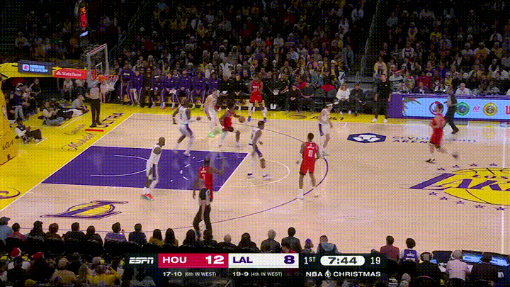 火箭超级巨星杜兰特真是防不胜防!在今天火箭客场挑战湖人的圣诞大战中,当时比赛进行到了第一节的七分多钟,杜兰特在一次进攻回合中接队友阿门-汤普森的传球后迎着艾顿的长臂稳稳地命中了一记标志性的后仰跳投,帮助球队继续扩大了领先优势。 虽然艾顿已经极力干扰杜兰特的跳投,但是艾顿就是防不住。