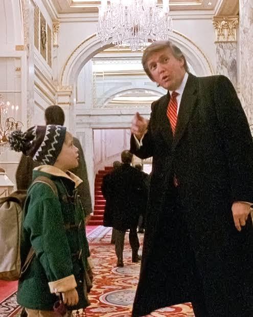 圣诞前夕,《小鬼当家》的主演麦考利·卡尔金与两位“笨贼”演员在一次公开活动中重聚。啊,恍然间,《小鬼当家》已上映35年了。 当年一头金发的小机灵鬼,现在已是有2个儿子的45岁中年老爸。还好,身材没走样。 Trump曾在影片中客串表演过。前段时间我还重温过一次《小鬼当家》,这电影就像个快乐病毒,一看就传染。那天家里没人,我叫了外卖,喝着冰镇可乐,边吃边看《小鬼当家》,真是逍遥自在、童心大发。 尽管后来麦考利很少有拿得出手的作品,但他的《小鬼当家》角色已成为无数人的快乐童年记忆,这就够了。感谢这位曾经的著名童星。