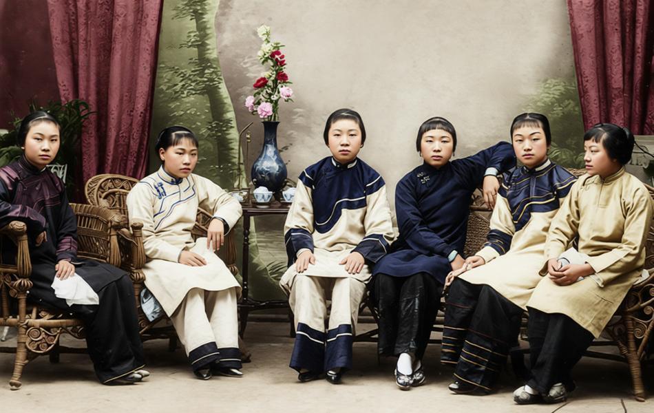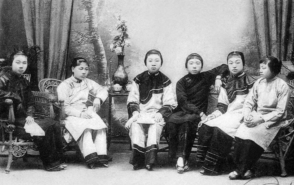 这张照片是晚清江南地区(如秦淮河、苏州等地)妓院中的女子。 晚清江南的妓院(尤其是秦淮河一带)是当时娱乐文化的集中地之一,这些女子多因生计所迫进入风尘,除了容貌外,往往还需掌握琴棋书画等技艺来迎合客人;她们的收入大多被院所盘剥,生活处境普遍艰辛。