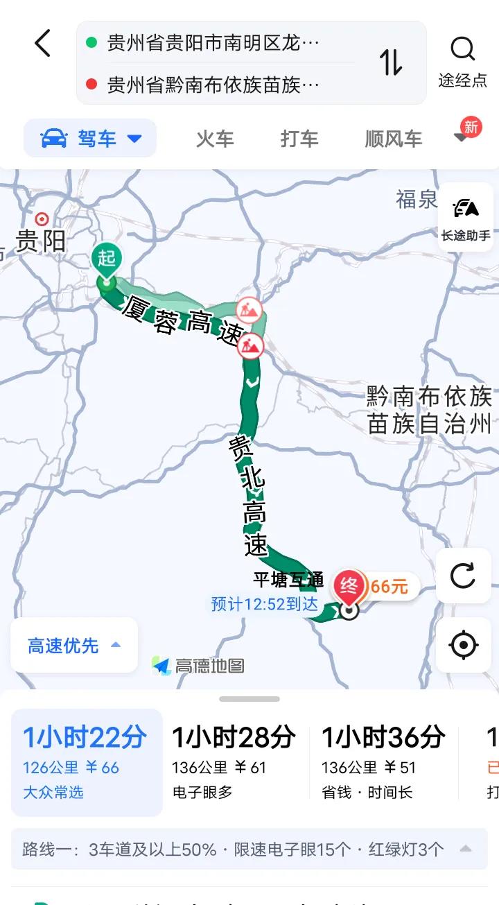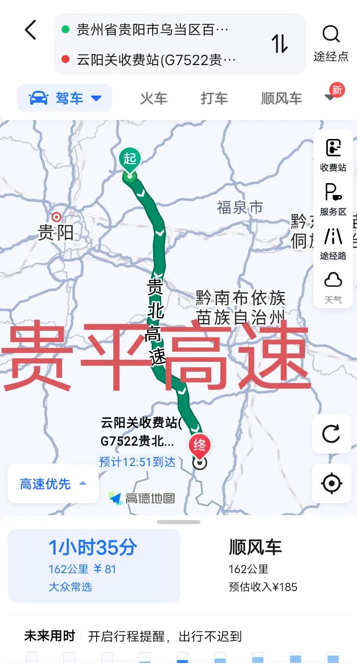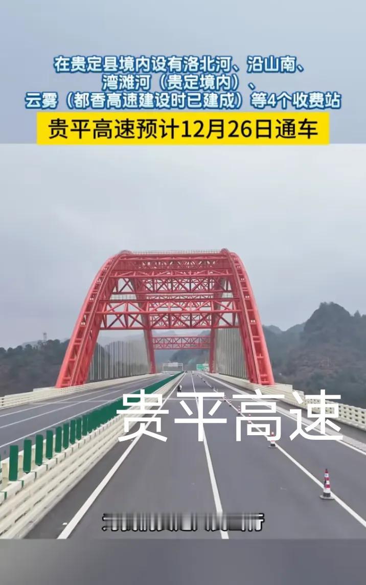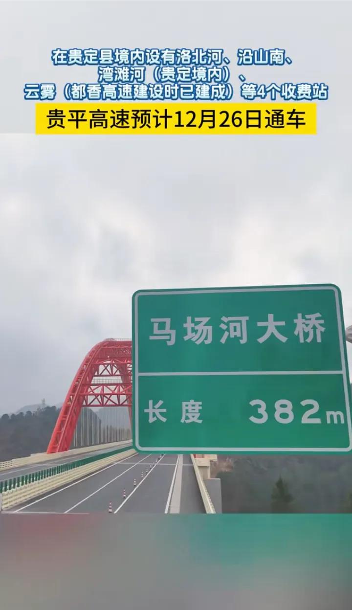 已经通车,贵阳至黔南州平塘的贵平高速已于今天(12月26日)正式通车,收费截止日期为2055年12月25日,贵平高速的全线建成将贵阳开车来往平塘的时间缩短至80分钟左右,贵州和广西各新增一条省际大通道,贵阳开车来往广西南宁和北海等地G75兰海高速也不在是唯一选择,贵平高速是G7522贵北高速重要的组成部分,起于贵阳乌当区百宜镇接G69银百高速,止于平塘云阳关附近的桂黔界,沿途主要途经贵定和平塘多个乡镇,沿途主要与G60沪昆高速、G76厦蓉高速互联互通,双向六车道,设计时速100公里每小时,从贵平高速贵阳百宜互通至平塘云阳关互通开车只需1.5小时左右,对沿途区县和乡镇发展还有物流运输能起到重要的作用。