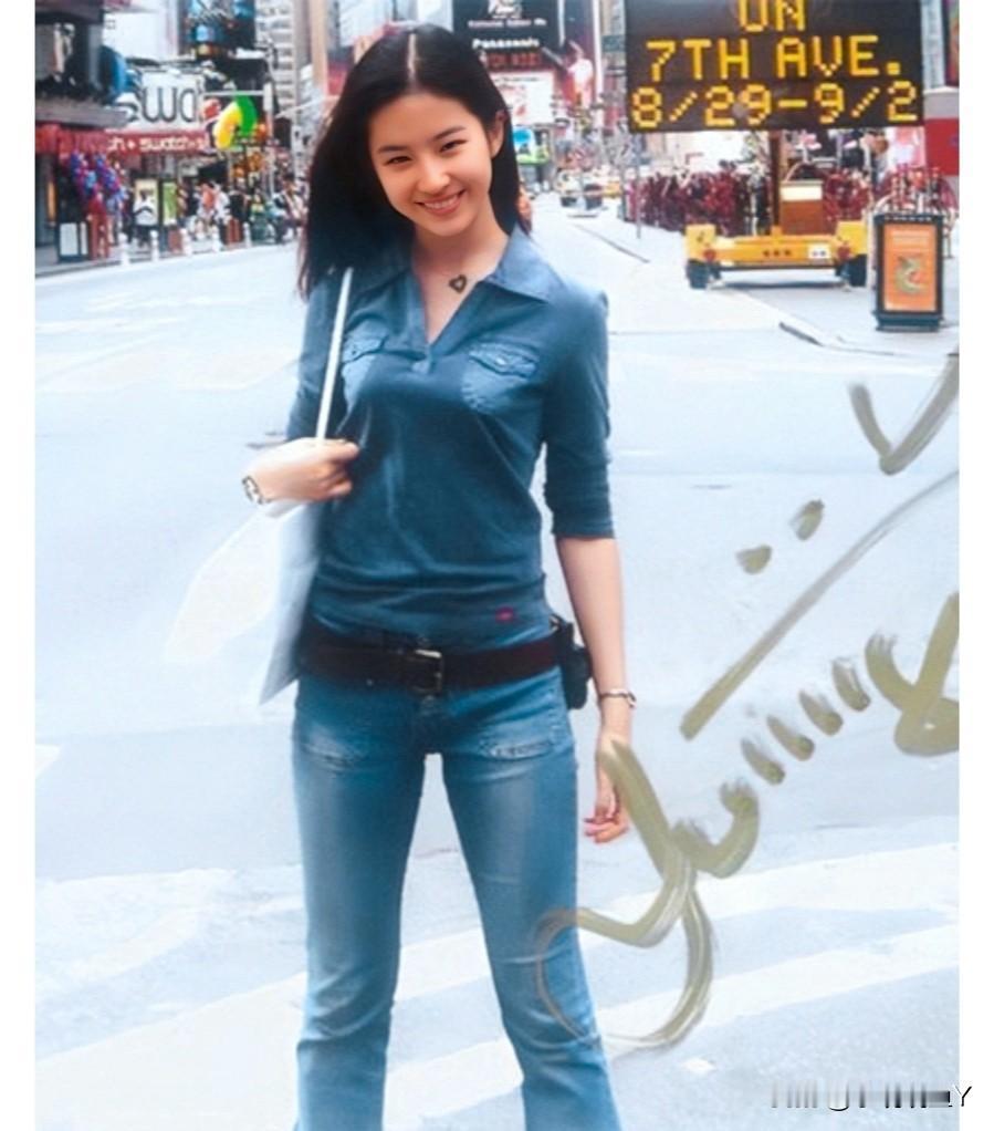这是刘亦菲少女时期站在美国街头的照片啊,拍摄的时候还在二十多年前,长发飘飘,笑容甜美,浑身洋溢着青春的气息!