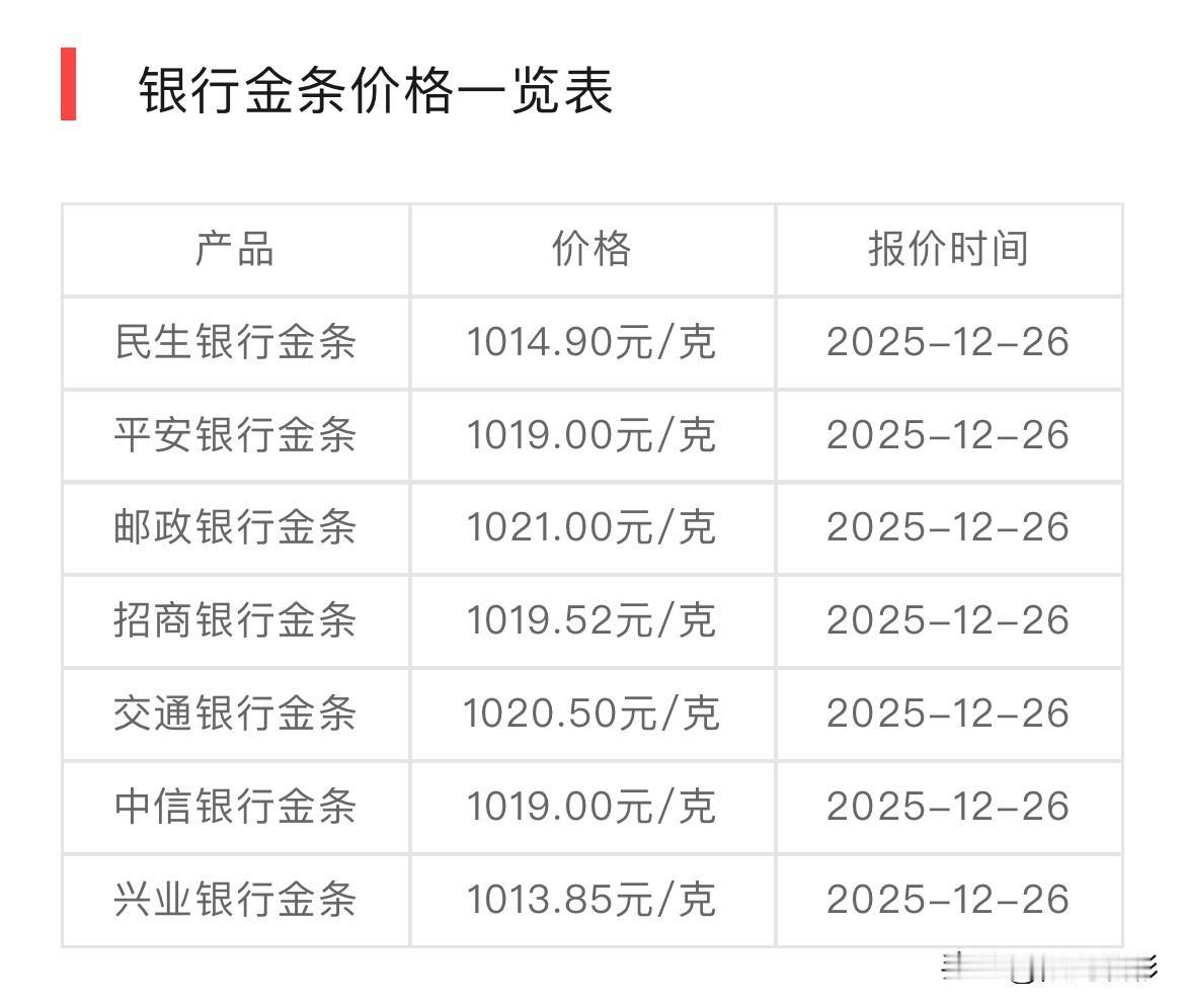 快看! 各大银行金条价格有所下降了,现在来看看卖多少钱一克! 工商银行金条1024.69元/克, 建设银行金条1017.50元/克, 农业银行金条1030.40元/克, 邮政银行金条1021.00元/克。 同比于昨天农业银行金条价格下降了10.65元/克,邮政银行金条下降了6.69元/克,建设银行金条下降了3.6元/克,工商银行金条价格有所微微下降。 各行金条价格基本保持在1013.85元/克—1030.40元/克区间。 所有信息都只是提供参考价值! 购买黄金有风险,投资需要谨慎购买! 投资金条金价 金条行情 银行金条 投资金条 黄金一克小金条 银行金条价 普通人买金条