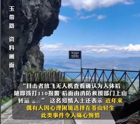 12 月 23 日,云南大理苍山玉带路,一名外地男子疑似自缢身亡,遗体被游客意外发现。 男子年仅二十余岁,12 月 19 日独自乘坐索道上山,此后彻底失联,时隔 4 天才被发现。遗体悬挂在玉带路铁围栏外侧,身体悬空,皮肤已发紫且伴有轻微异味,缠绕颈部的绳索细且不显眼,藏在繁茂植被中,若非目击者放飞无人机查看,根本难以察觉。 发现后目击者第一时间报警,消防救援人员紧急上山,顶着山间峭壁险峻转运遗体。玉带路本是苍山半山腰绝美步道,因玉带云相伴得名,串联三大索道,风景如画,却成了年轻人诀别的地方。知情者称近年常有人因心理困境在此轻生,每桩都让人痛心。 记者向当地相关部门求证,截至发稿始终未获回应。 人生纵有万般难,生命从不是退路。二十岁的人生才刚铺开,怎忍就此定格苍山。愿世间少些无解的困局,多些温暖接住失意的人,苍山再无这般遗憾!