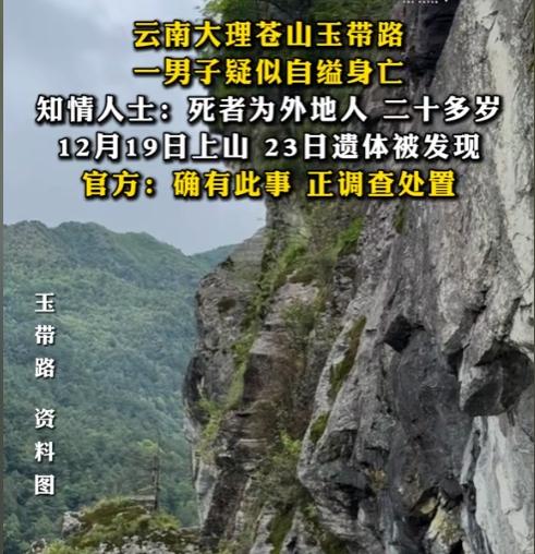 12月23日,云南大理苍山玉带路,一名外地男子疑似自缢身亡,遗体被游客意外