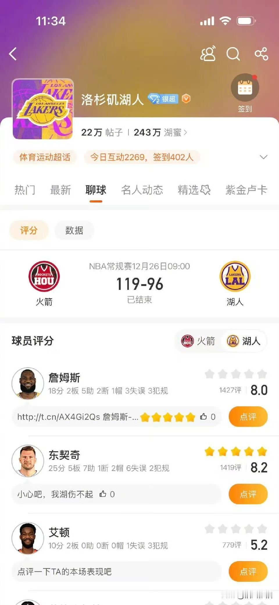 两支近期都有些小状况的球队在年终相遇,但火箭整场比赛都未曾落后过一秒钟。 湖人遭遇了赛季最长的三连败,而且过去3场比赛场均只有97.3分,作为一支进攻主导的球队,本赛季湖人得分在110分以下的比赛1胜9负,110分以上18胜1负。 与此同时,在湖人本赛季打进关键时刻的比赛10胜0负的同时,他们的10场输球分差全部拉开到了两位数,这使得本场过后湖人的赛季总净胜分变成了负的。哪怕雷迪克最近开始派上一些看上去防守倾向高的阵容,但似乎从未改变过比赛的进程,湖人进攻一旦遭遇挑战,就无法将比赛顶在相持阶段。 看着今天在对面复出的芬尼-史密斯,不知道雷迪克会不会怀念这张防守端的百搭牌,当然更有可能的是,即便芬尼-史密斯在如今这个状态的湖人,也无法改变太多。