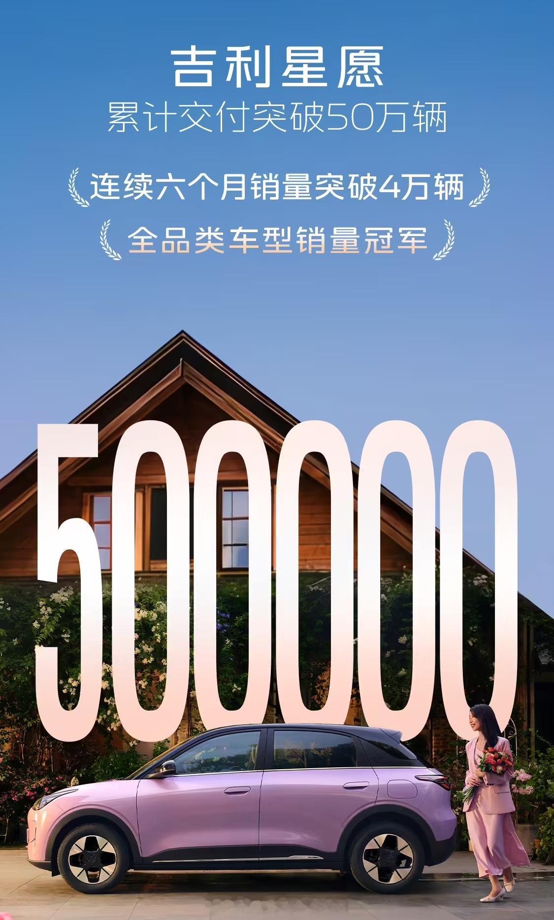 吉利星愿累计交付量正式突破50万辆了,什么叫爆款,这就叫爆款。自2024