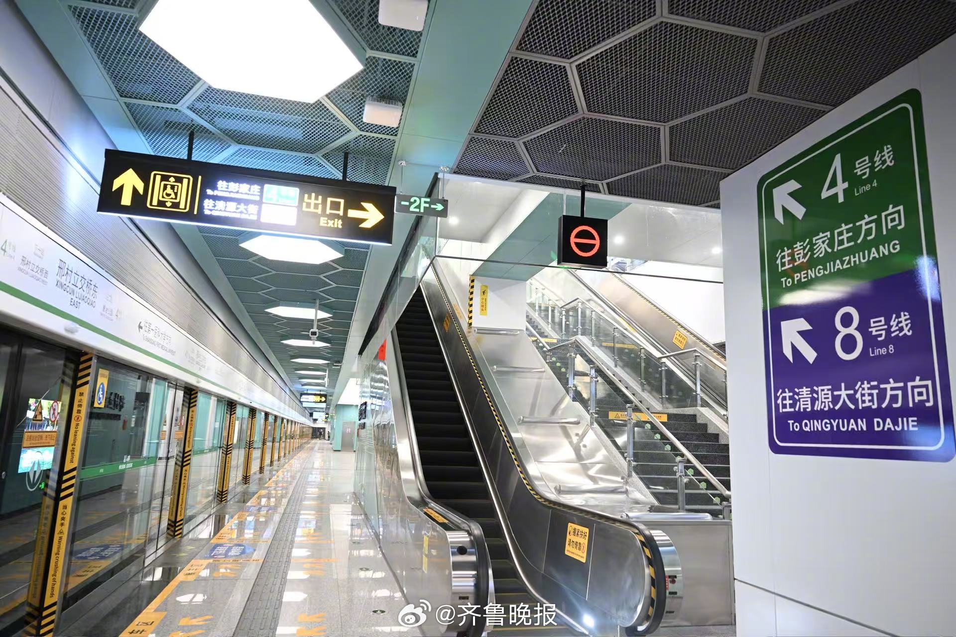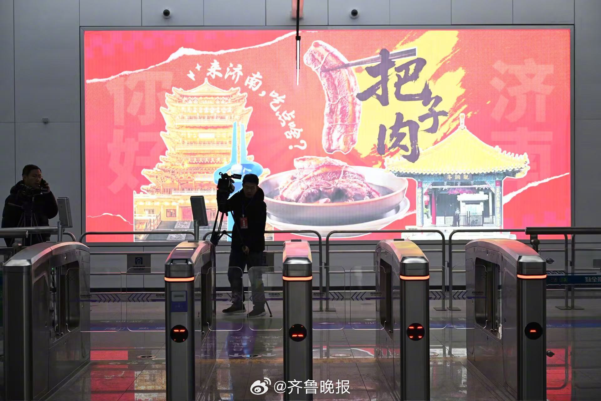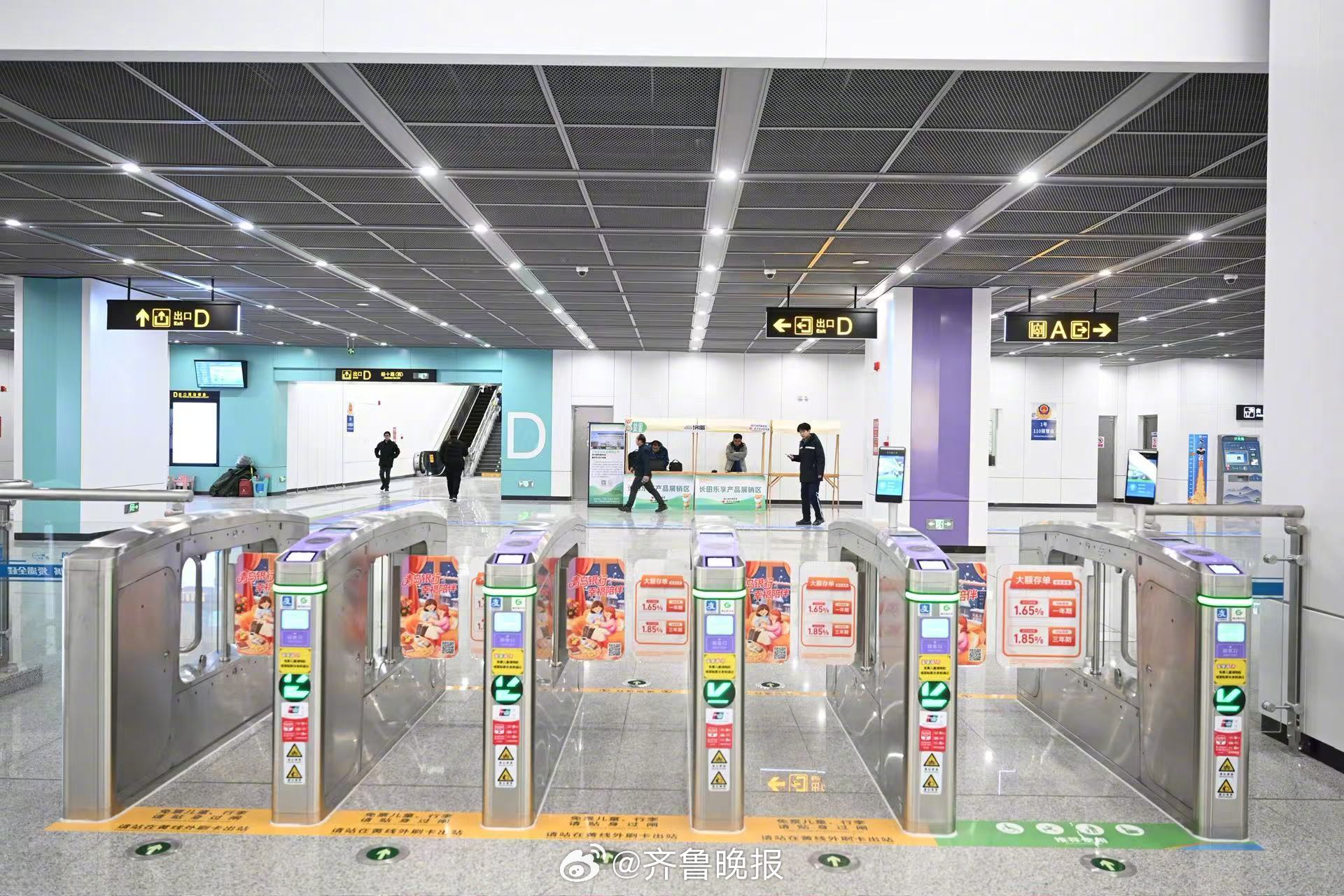 【三线齐发,记者提前#探营济南地铁4号线8号线换乘车站#】济南地铁4、8号线和6号线东段将于12月27日10时15分开通运营,12月26日下午,记者提前探营4号线与8号线换乘车站邢村立交桥东站,沿扶梯进入站内,地上和悬挂的标识十分醒目,墙上“把子肉油旋儿”的宣传画很有济南特色。自动售票机、闸机、安检口等设备已经试运行,4号线和8号线的车辆来回空运,保洁人员正在进行最后的清洁……一切准备就绪,静候明天上午乘客的到来。