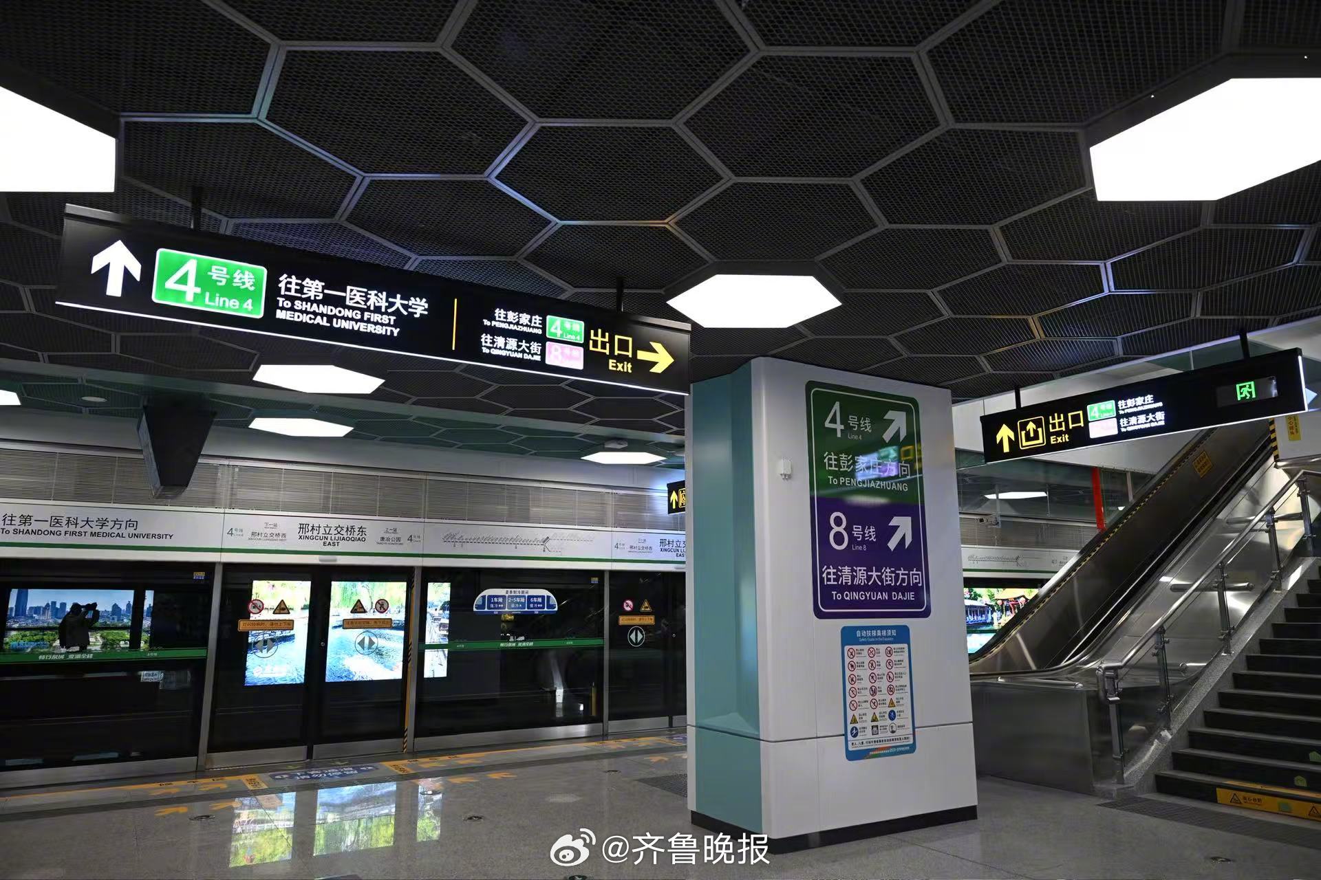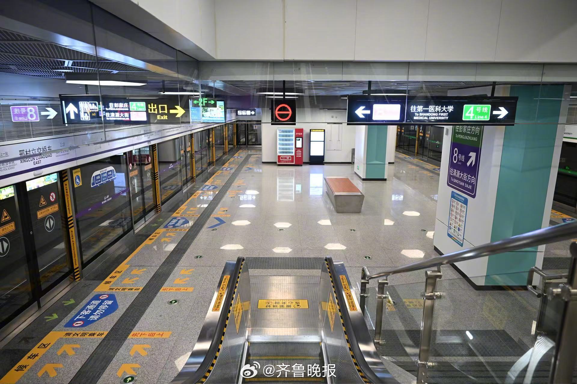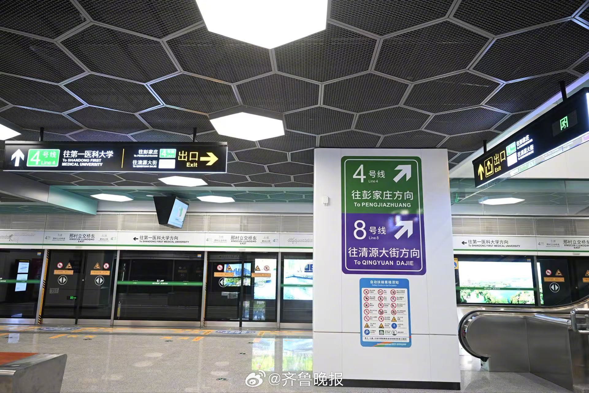 【三线齐发,记者提前#探营济南地铁4号线8号线换乘车站#】济南地铁4、8号线和6号线东段将于12月27日10时15分开通运营,12月26日下午,记者提前探营4号线与8号线换乘车站邢村立交桥东站,沿扶梯进入站内,地上和悬挂的标识十分醒目,墙上“把子肉油旋儿”的宣传画很有济南特色。自动售票机、闸机、安检口等设备已经试运行,4号线和8号线的车辆来回空运,保洁人员正在进行最后的清洁……一切准备就绪,静候明天上午乘客的到来。