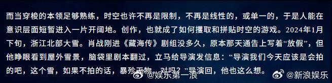 藏海传雪中戏是肖战想的 采访分享《藏海传》雪中戏幕后故事,他那时刚进组没多久,原本那天通告上写着“放假”,但他睁眼看到屋外雪景,脑袋里剧本翻过,立马给导演发信息:“导演我们今天应该是会拍的吧,这个雪,如果不拍的话,暴殄天物,对吗?”
