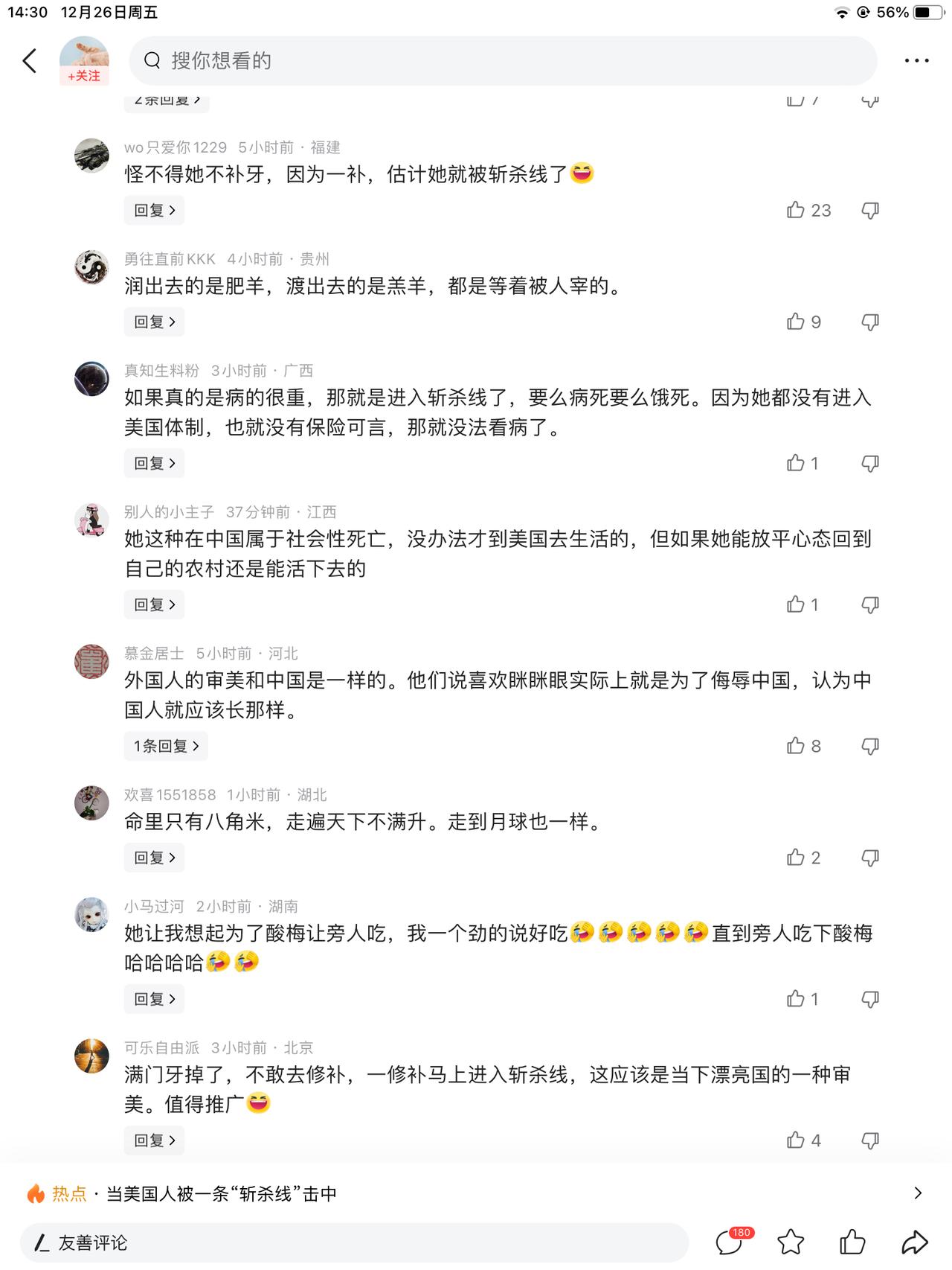 凤姐漏风的牙齿,证明了她离斩杀线就一牙之遥。 说了很多年的看病贵,原来老美才是真的贵。月薪4000美刀看不起牙,这你就不得不信了。 在国内,大医院去不起,私立去不起,还有农村那种小诊所,也将就能看。补颗牙还是绰绰有余。 我妈就是在大集上补的牙,门牙三颗一起补的,用着还挺好的。凤姐当初是怎么去的,导致她都回不来,所以不能回国治疗。 说什么中国男人配不上她,漂亮男人好,她也没找到一个呢?一个人,想想也怪可怜的,孤苦无依。比起那些一米宽的大屁股,凤姐的发福还真可以忽略不计。命里八尺难求一丈。走到天边也是个底层。曾经那些夸张的语言的回旋镖,如今正中命门。努力吧,多干活才有饭吃。