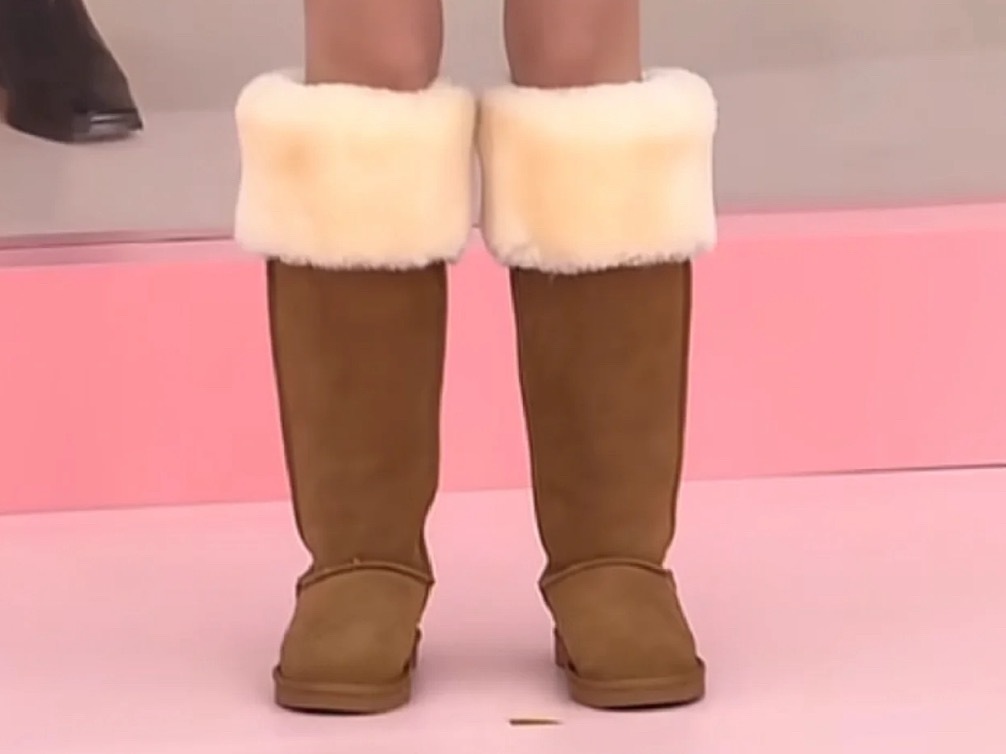 给美女穿的什么泡脚桶?把人种鞋里了太好笑了这双鞋子哈哈哈哈哈 丑萌丑萌的但是不影响美女的颜值