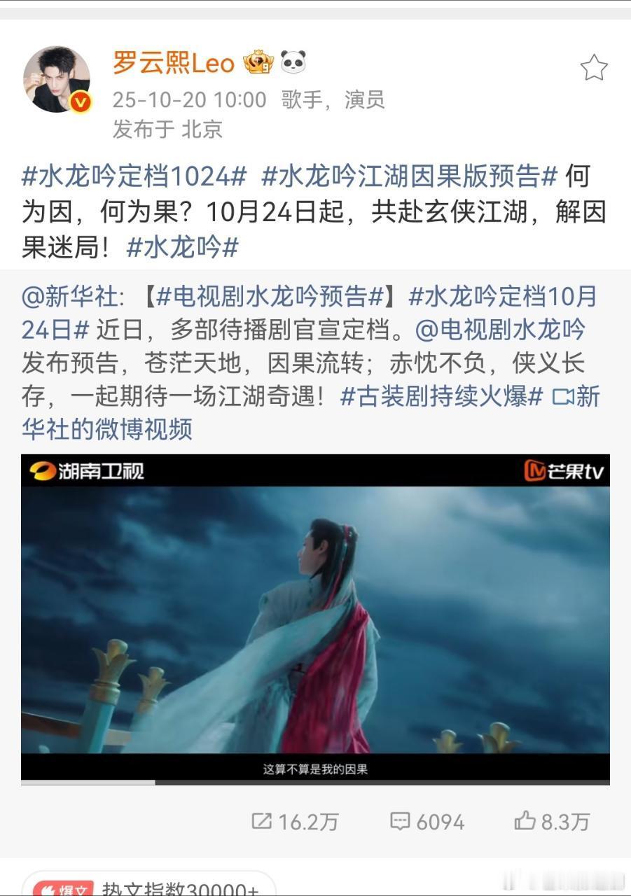 罗云熙剥茧,新华社首宣定档。记得水龙吟也是新华社首宣定档的。罗云熙根正苗红