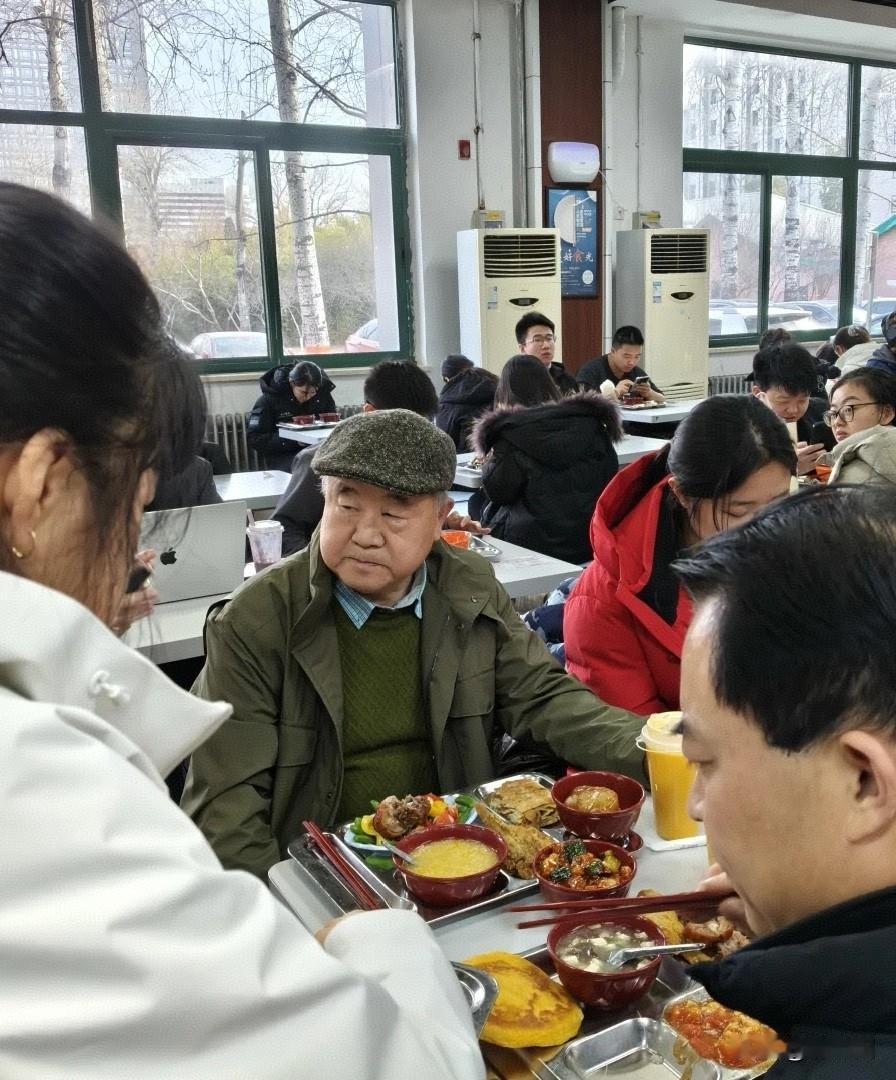 70岁著名作家莫言,北师大饭堂吃饭被网友偶遇,全程配合打招呼合影,毫无名人架子。 照片中,莫言头戴前进帽,身穿军绿色风衣内搭条纹衬衫毛线衣,整体形象接地气,打破了部分人对文学大师的刻板印象。 莫言对偶遇事件反应幽默亲切。 笑着说:“这让我觉得跟大家很亲近,没有距离感。” 全程和网友亲切互动,展现出亲和、朴实的气质。不过,正是这份“放低姿态”,让网友们对他真实的感觉更喜欢了。