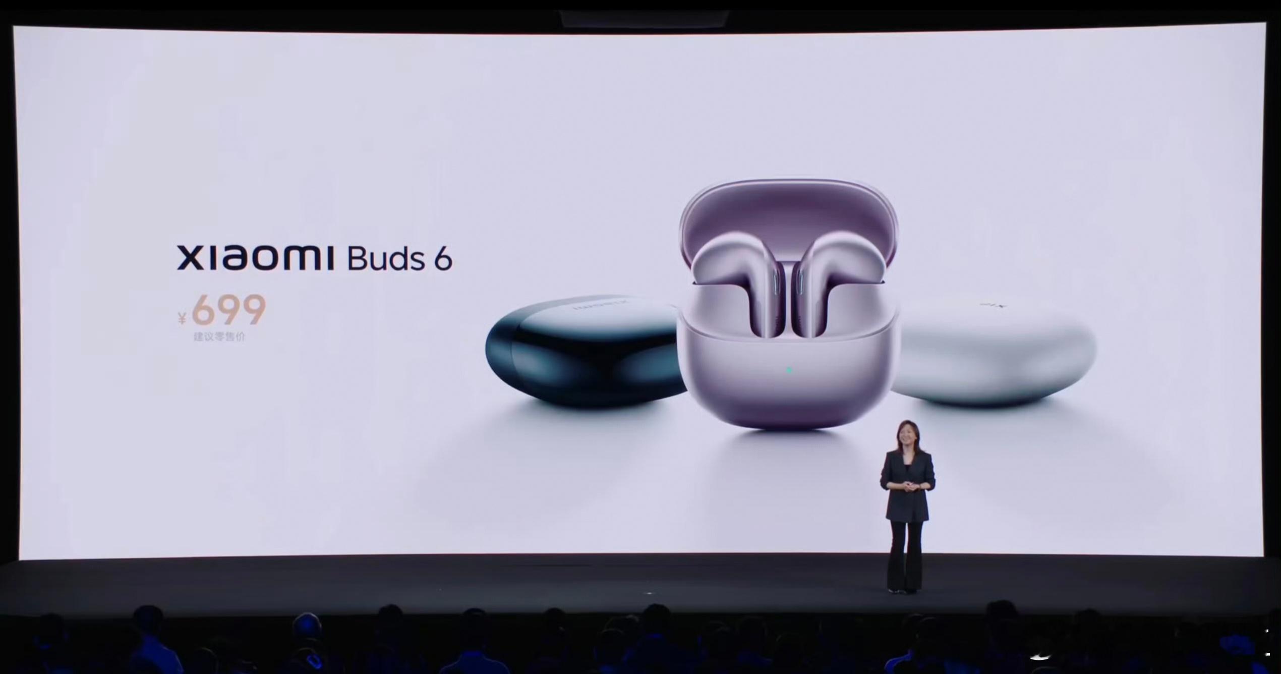 小米 Buds 6-售价——699元-配色:雪山白 钛光金-性能:搭载高通无线音频平台 S7 码率 2.1Mbps无损音频传输 aptX Adaptive LE +自适应听感 2.0-声学单元:定制三磁镀金发声单元(11mm 动圈)24K 镀金振膜+哈曼金耳朵大师团队联合调音-续航:单次使用 6小时续航+充电盒 35小时续航-其他:支持IP54 防尘防水 压感+滑动交互 耳机独立录音 2.0支持面对面翻译 同声传译 3Mic+AI 通话降噪