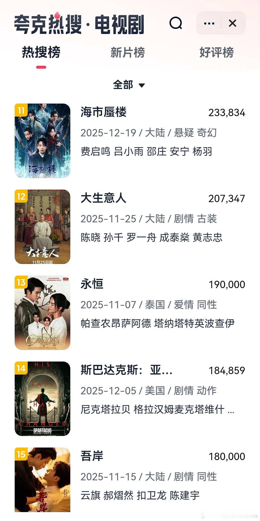 24计有多铺呢?连夸克观众都不爱看它,直到超点完结都上不了榜🥲众所周知这部剧是平台头部S++剧组请来了五个影帝影后视帝级别的老戏骨坐镇,结果超级大投资换来的是超级大铺街,史诗级的血铺 。在播剧里但凡有点声量的都在榜上了。被嘲血铺的顾漫大IP剧骄阳似我在、刚开播的罚罪2在、和24计同一天开播的双轨在,连环大陆剧都在榜上。只有24计连下沉市场的夸克观众都不感兴趣,昨天超点完结都没上榜,观众直接绕道走。