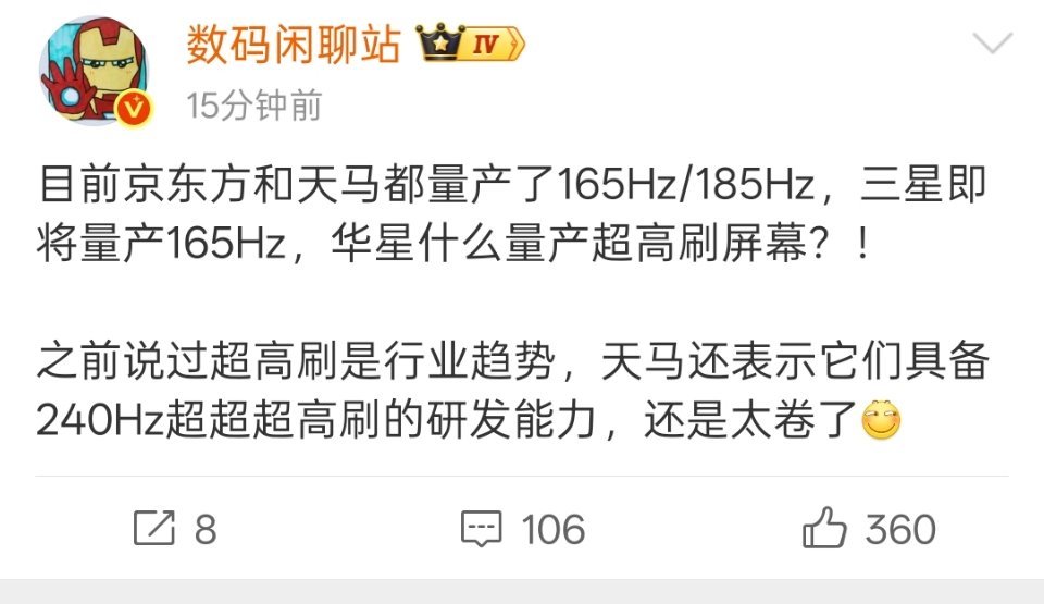 如果 2026 年,主打性能游戏旗舰的手机还没用上 165Hz ,只能说 out