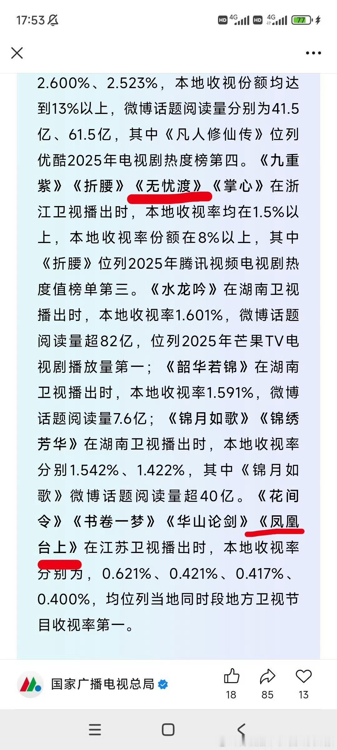 cvb2025年收视报告,提到了任嘉伦今年上星三部剧—风与潮、无忧渡、凤凰台上, 国家广电总局认证风与潮9集2.8亿人次任嘉伦伟大🙋