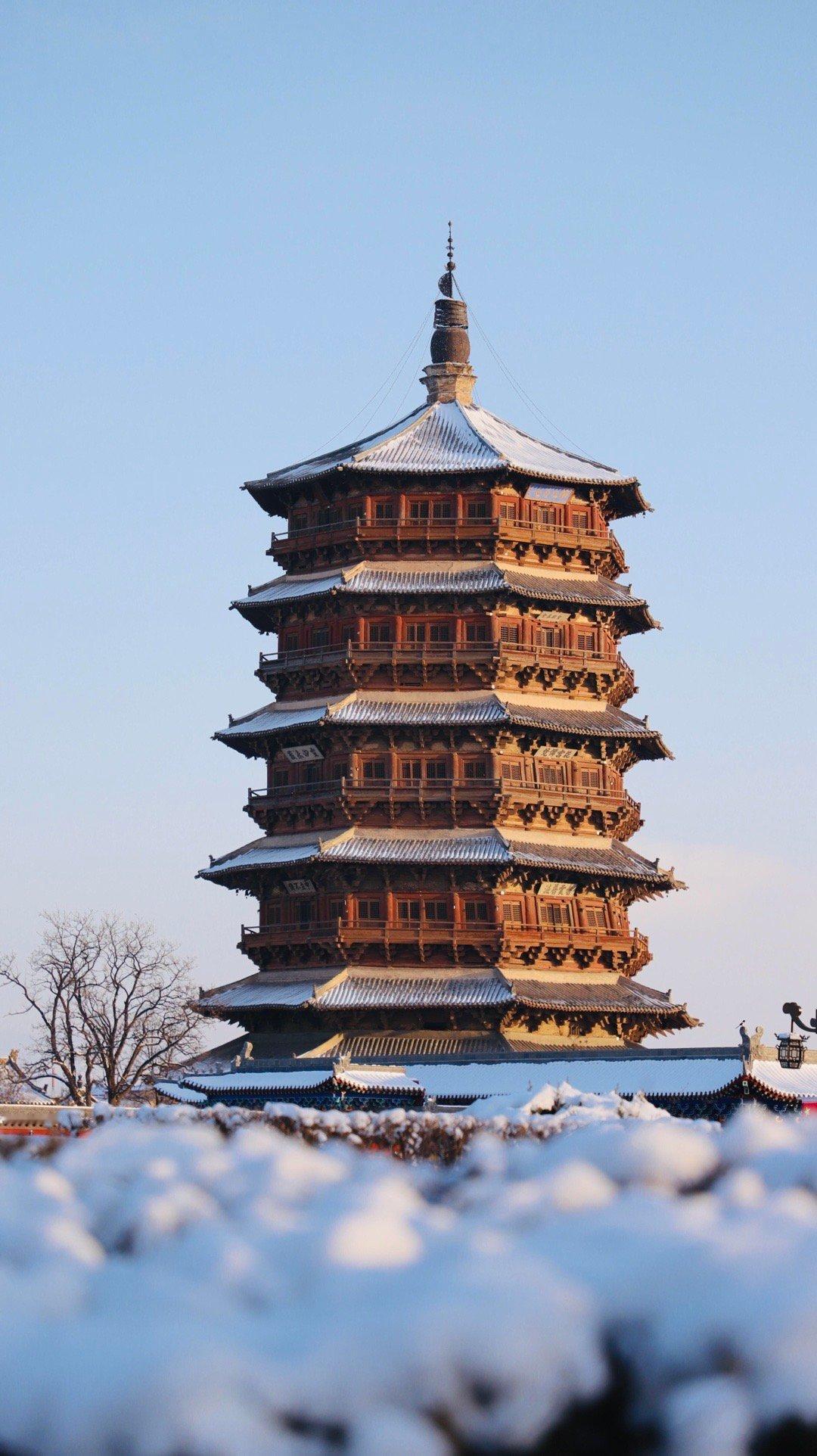 应县木塔 | 千年一塔,一身风骨。不用一钉一铆,只用时光与木头对话。它在,山河的气魄就在。