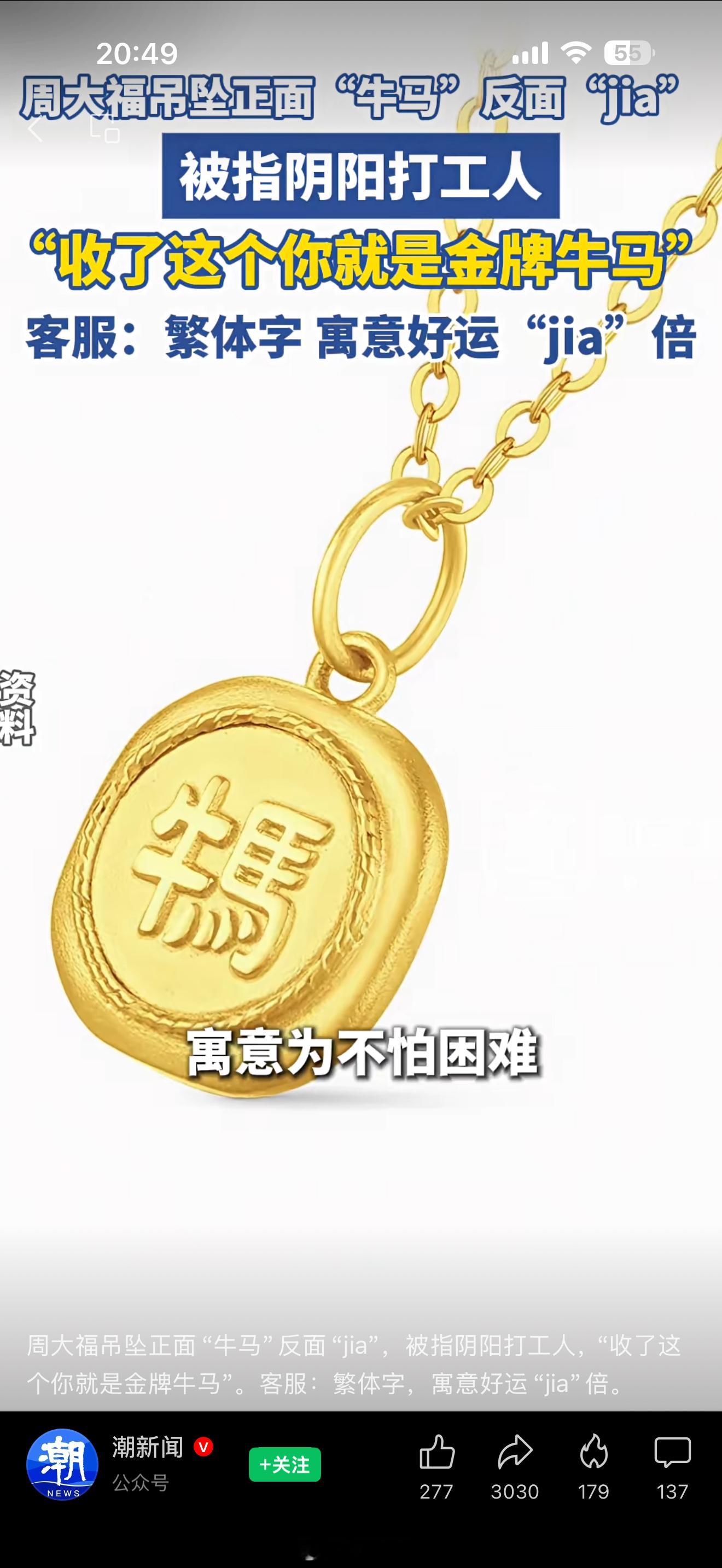 周大福牛马吊坠被指阴阳打工人看到太迟了,来不及买了好像已经下架了