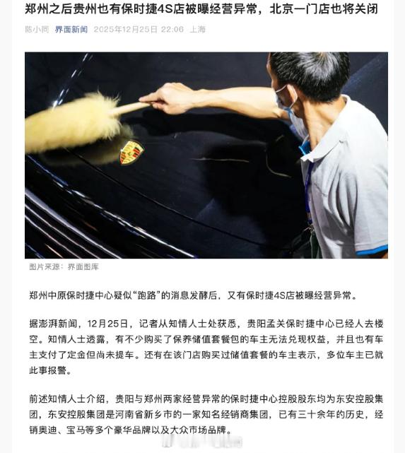 近两天,保时捷两家授权中心(郑州中原与贵阳孟关)相继人去楼空,留下付了定金、买了“终身保养”套餐却无法兑现的车主。贵阳有车主月初刚交定金,提车当天却发现门店已空;部分车主虽已提车,但因拿不到车辆合格证,车成了无法上牌的“黑户”。目前,多地警方及工作专班已介入,涉事门店的控股集团法人却称“不清楚原因”。这背后,是保时捷在华销量的严峻现实:2025年前三季度销量仅3.2万辆,同比暴跌26%。在国产高端品牌的挤压与激烈价格战下,部分经销商陷入严重亏损,难以为继与上述突发关停不同,北京石景山保时捷中心是计划内在明年关闭。保时捷已明确计划,到2026年将中国销售网点从约150家缩减至80家左右,意味着近一半经销商将退出。传统豪华品牌的渠道模式正经历剧痛,“收缩瘦身”能挽救颓势吗?而消费者应如何保护自身权益?保时捷中国回应郑州一门店疑似跑路中高端新能源车型热销