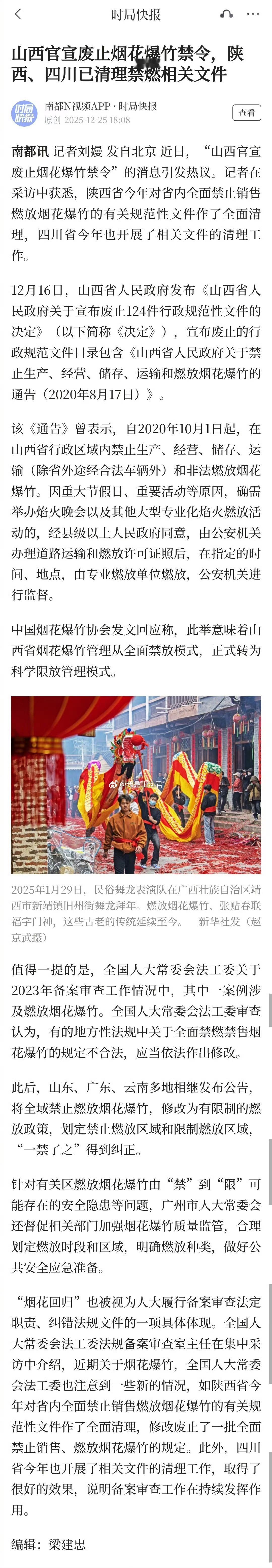 热点现场 烟花回归太戳年味!人大备案审查纠偏“一禁了之”,山西、陕川等多地“禁改限”,既回应民俗期盼,又靠划区域、控品类、强监管守住安全底线。烟火气里藏着法治温度,愿合规燃放让年味儿浓起来,平安与热闹兼得🧨包括锦州在内的辽宁各市伙伴,对于过年燃放烟花爆竹,你们有怎样的期待……全网热点共创计划多省份烟花爆竹由禁到限 锦州·晓波烧烤(南桥店)