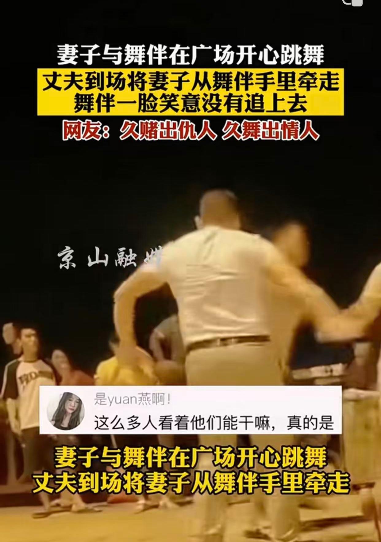 看到这个事儿,网友那句“久赌出仇人,久舞出情人”还挺有道理。在广场上,舞伴之间天天一起跳舞,难免会产生一些别样的情感。就像这对夫妻,妻子正和舞伴开心跳舞,丈夫一来就把她拉走了,估计丈夫心里也是犯嘀咕。现实中,很多人跳着舞就和舞伴关系不一般了,忽略了自己另一半的感受。夫妻之间的信任就像一张纸,有了褶皱就很难抚平。这事儿也给大家提个醒,跳舞可以,但得把握好度,别让舞伴影响了自己的家庭。