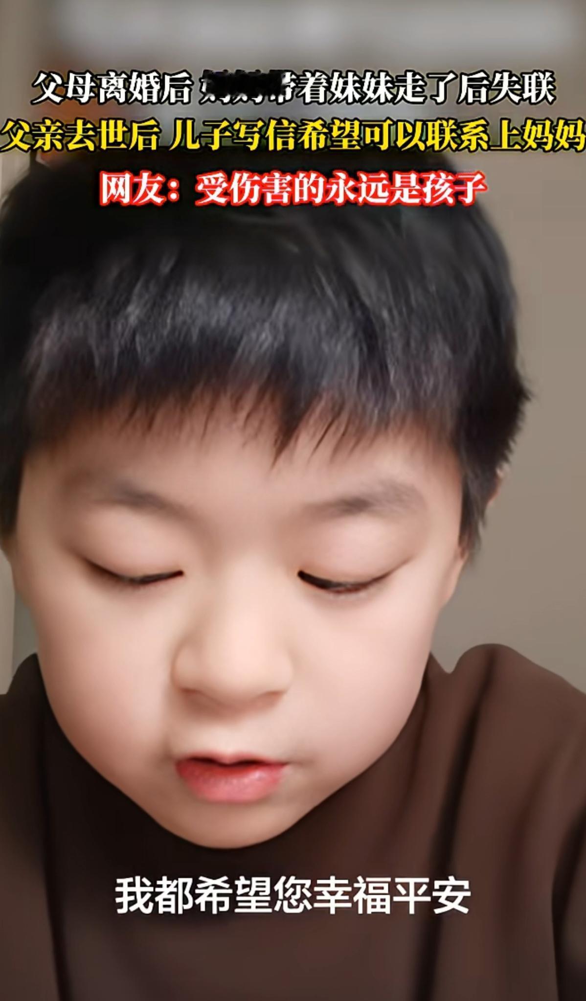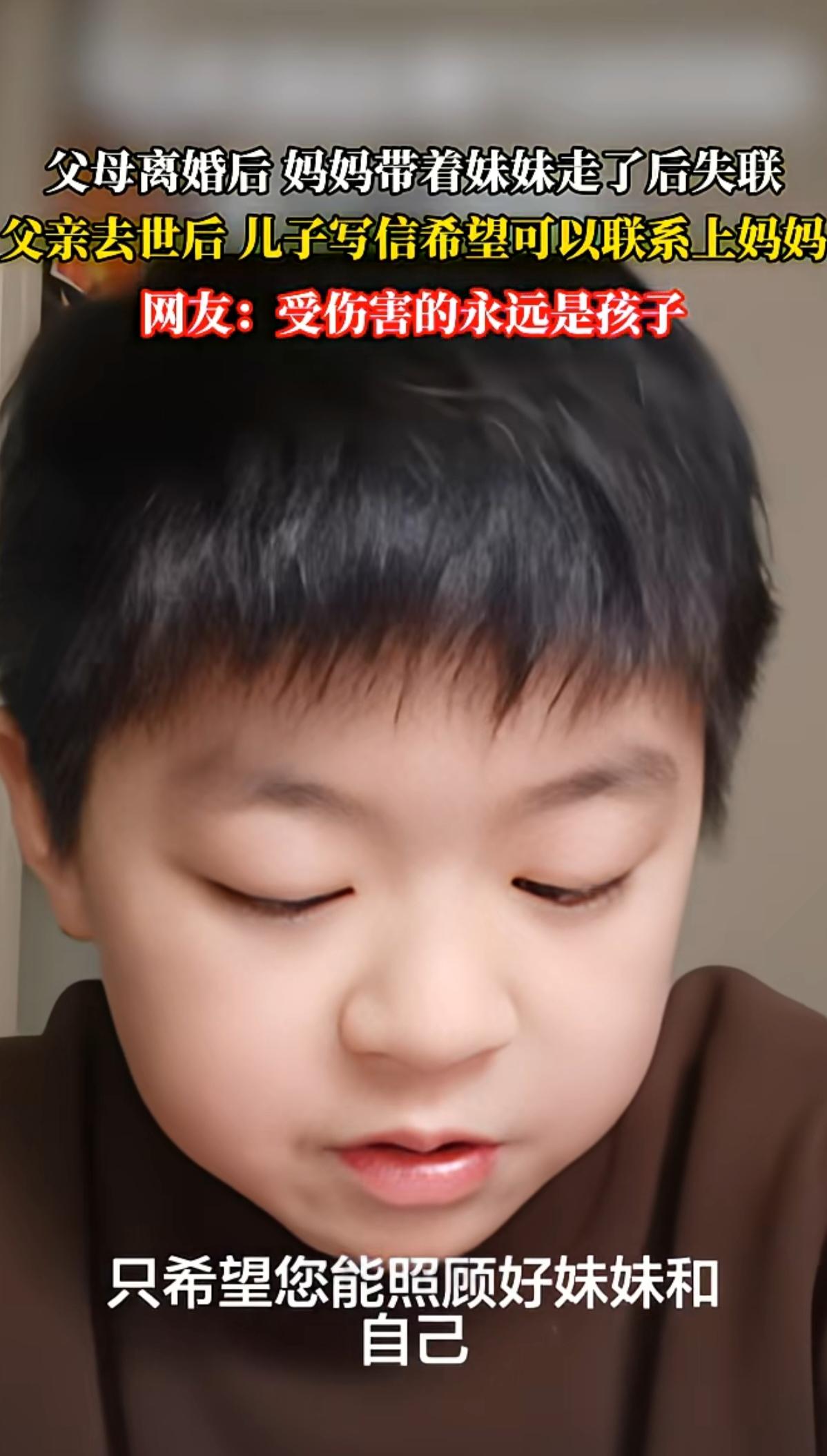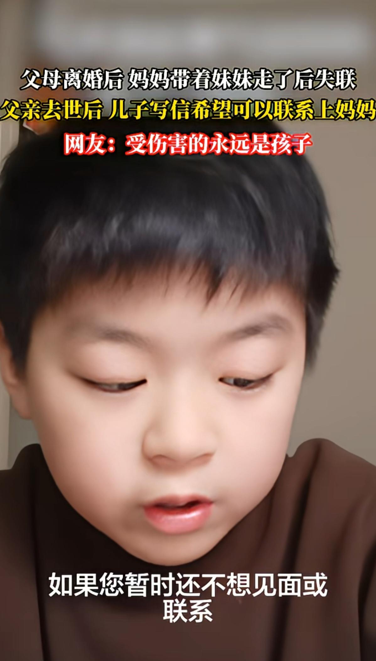 孩子给妈妈写了一封信,希望妈妈能联系自己,刚开始看了觉得很感人,孩子好可怜,看完
