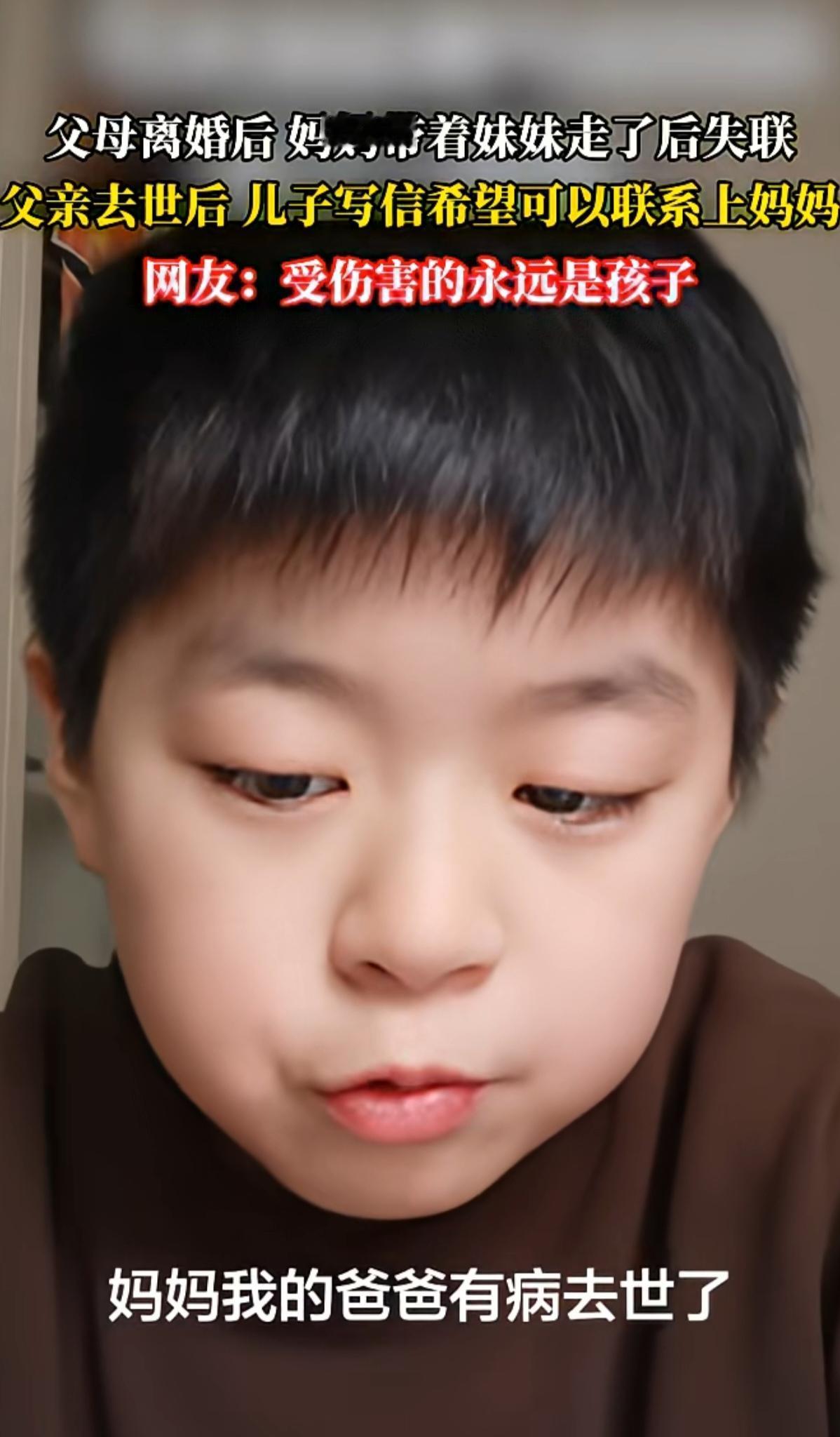 孩子给妈妈写了一封信,希望妈妈能联系自己,刚开始看了觉得很感人,孩子好可怜,看完评论区瞬间清醒,这孩子也不无辜 父母离异,妈妈带走了妹妹,父亲因病去世,孩子哭诉自己一个人,没有妈妈的联系方式,想让妈妈看到视频联系自己,如果不愿意联系,希望她和妹妹照顾好自己 仔细想想,正常离异的,一般会允许双方看孩子,除非什么原因闹得老死不相往来。或者,父亲这边阻止了妈妈来看孩子,甚至他们有妈妈的联系方式,只是没告诉孩子。而且妈妈还带着妹妹,父亲这边从来没想过还有一个孩子吗,从来没管过吗 现在父亲去世了,孩子哭着找妈妈,猜测也是有人给他出主意这么做,道德绑架啊!父亲在世,把孩子管的死死地是自家宝贝,父亲去世了,踢给他妈妈,好有人免费照顾,算盘打得真好 图片及素材源自网络,侵权必删