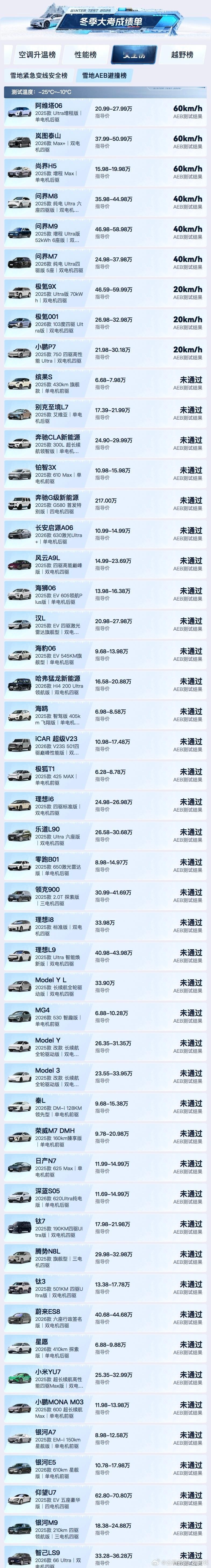 阿维塔06在极寒冬测里表现也很亮眼!主动安全不愧是乾坤智驾赋能,冰天雪地依旧能完成60km/h的AEB刹停。并且这么低的温度下依旧可以保证15分钟把电从30%充到80%,并没有因为天寒地冻影响车辆的各方面性能!打破成见,现在的新能源车已经不可同日而语啦!阿维塔06冬季用车指南
