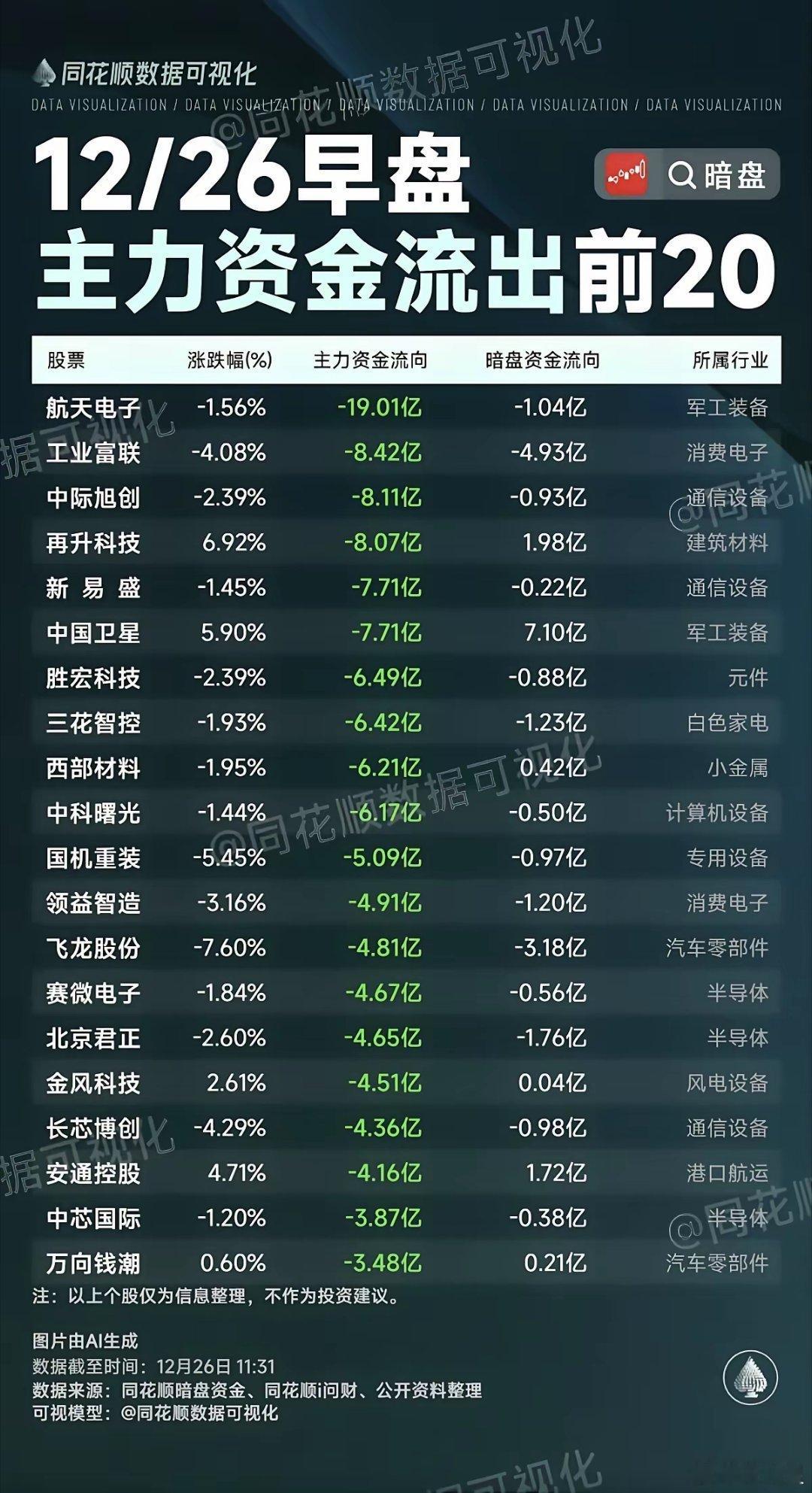 12.26周五 抢筹出逃:大资金流向追踪!整个市场,锂矿资源,碳酸锂,海南板块,工业金属,盐湖提锂,电池相关,氟化工,磷化工等资金抢筹。医疗器械,造纸印刷,互联网电商,芬太尼,电子化学品,染料,生物疫苗等表现不佳。