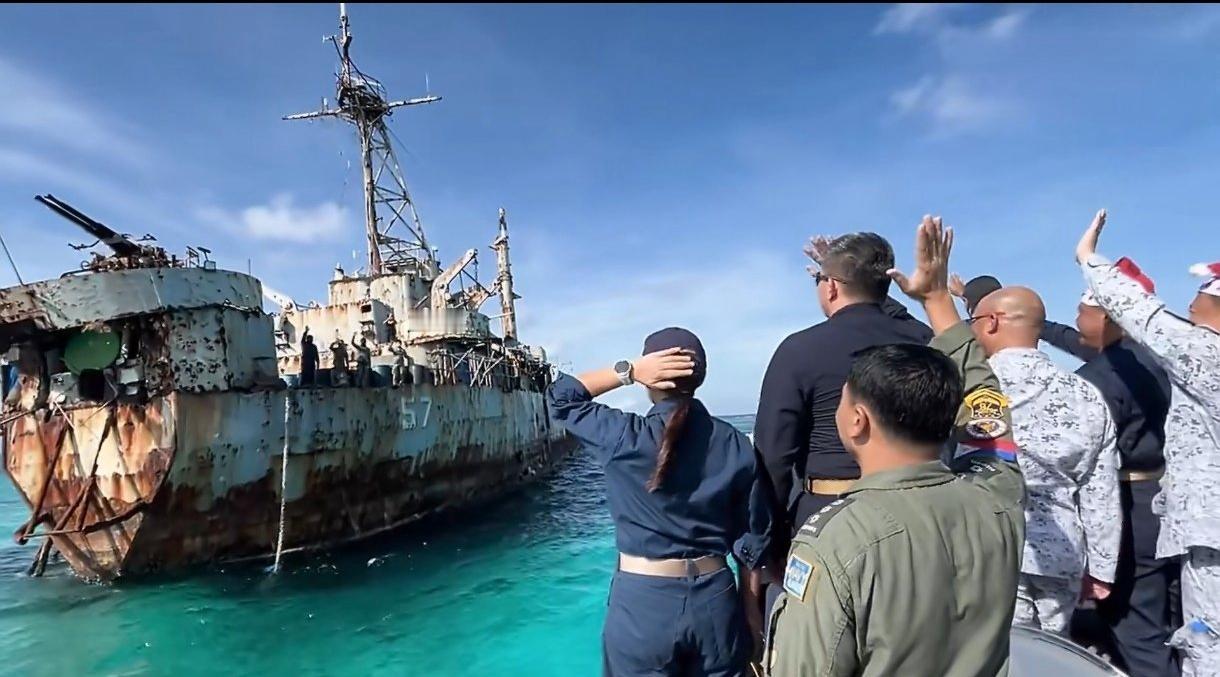 菲律宾武装部队报道称,12月23日,他们向非法“坐滩”仁爱礁的“马德雷山”号登陆舰送上圣诞节礼包,以及生活补给品。同时还向非法侵占的中业岛、双黄沙洲、司令礁等南沙群岛岛礁,运送了不少相关物资,以此来庆祝节日。 为表示真实可靠,还公开了不少照片,包括军方高层乘坐小艇上舰,刻意戴着小红帽。登上“马德雷山”号之后,和船上人员以及补给物资合影,趁圣诞节热度开始炒作宣传。不过从中方取证画面可见,实际画面来自12月12日,菲律宾提前进行了“彩排”。估计是利用送补给机会,在接近破船时集体换装,然后开始演戏。虽然是精心设计的虚假宣传,但菲律宾能够这么顺利造假,其实可以在允许他们送补给的同时,采用登临检查防止类似情况发生。