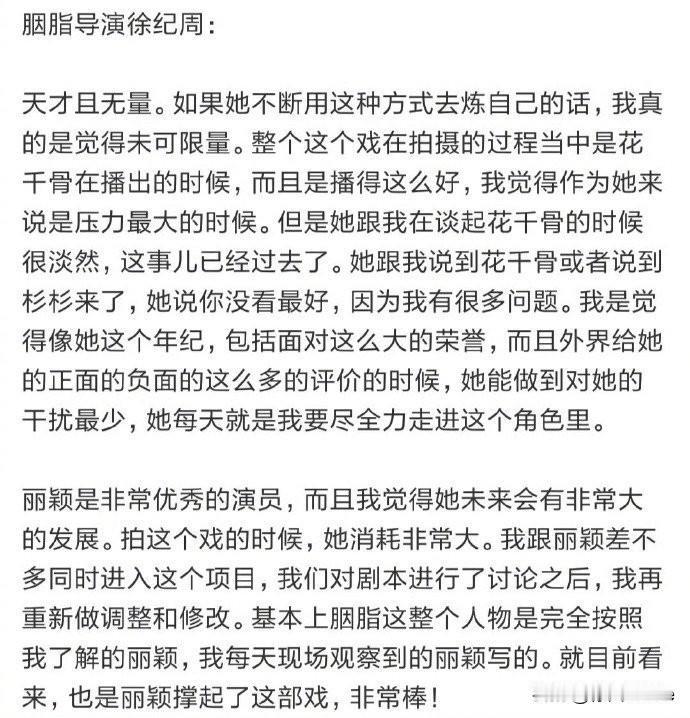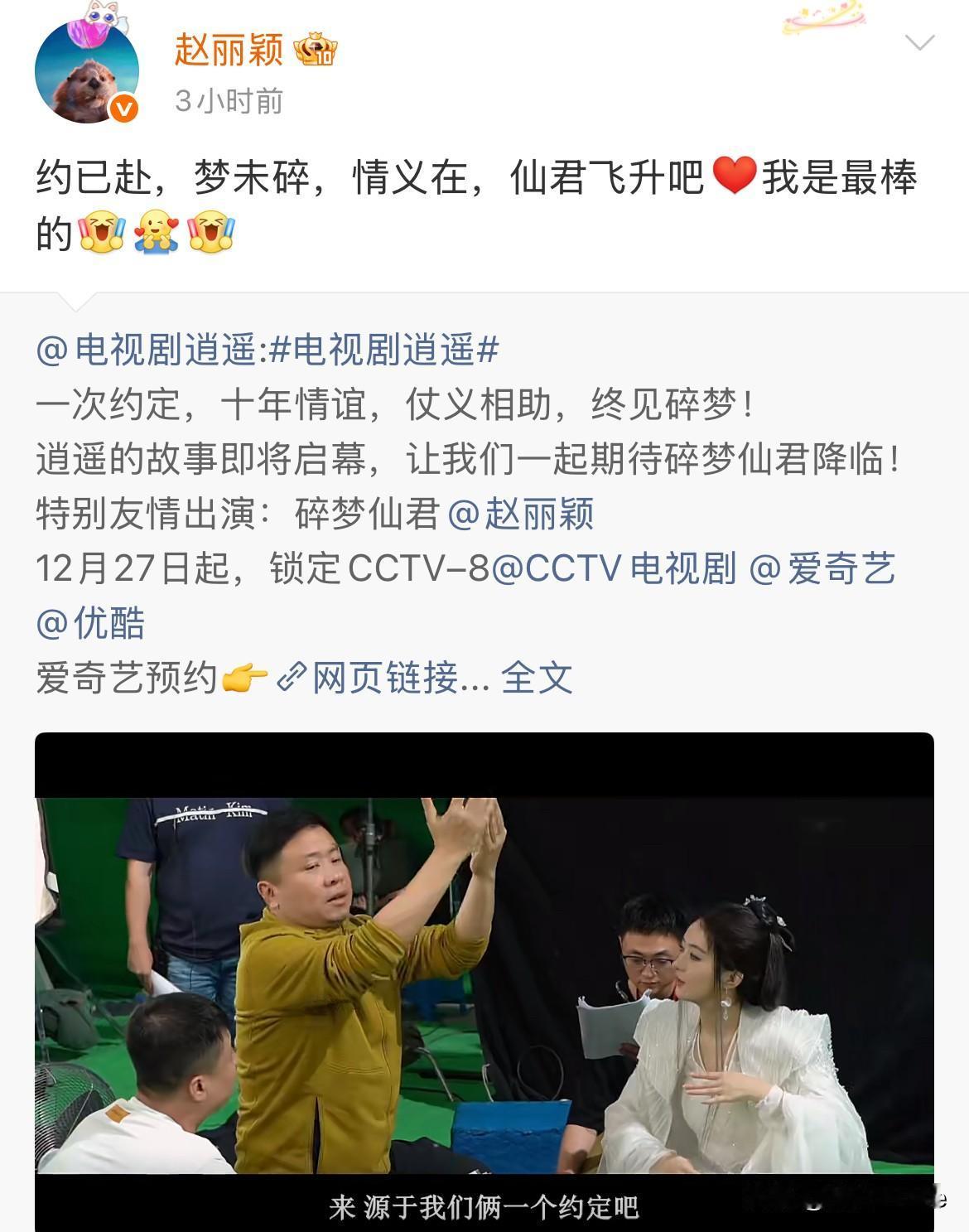 12月26日,赵丽颖赴徐纪周十年之约! 原来《逍遥》导演是《胭脂》导演,难怪赵丽颖愿意以顶流身份降薪客串提携新人主演! 前段时间突然说这部剧有赵丽颖大家还一脸懵,看主演跟赵丽颖也不熟,谁这么大面子让赵丽颖给这部剧抬轿子,原来是徐纪周! 15年《胭脂》杀青时,徐纪周发文对赵丽颖的夸赞,是对赵丽颖的一种肯定与鼓舞,那时候赵丽颖事业刚刚起步,还存在饱受争议地点,对她全肯定的人不算多,徐纪周算一个! 赵丽颖懂得感恩,徐纪周懂得感谢,友谊99