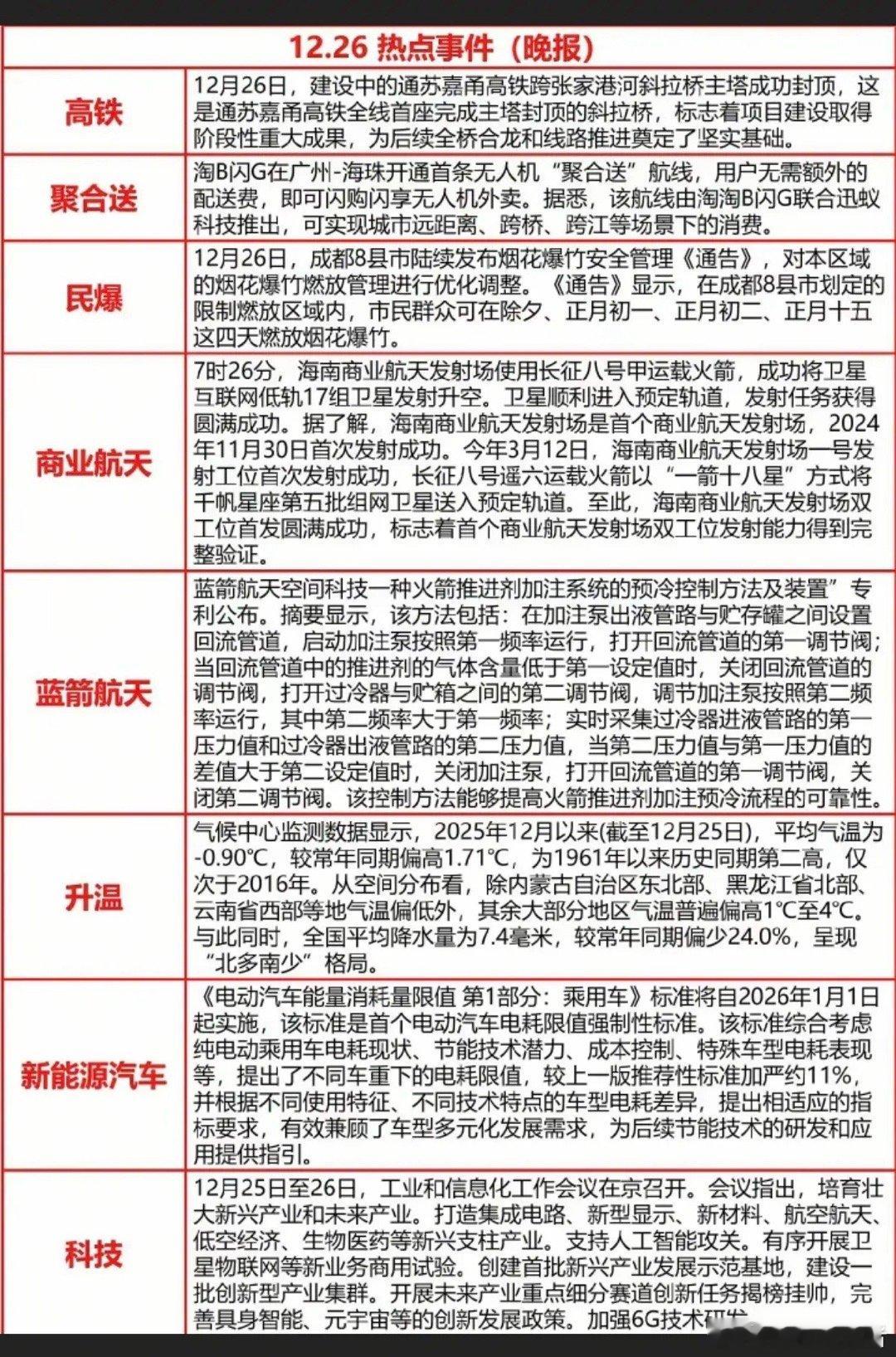12.26周五晚间 重要财经信息汇总!1.高铁,聚合送2.民爆3.蓝箭航天4.新能源汽车5.集成电路,新材料今日看盘a股上证指数