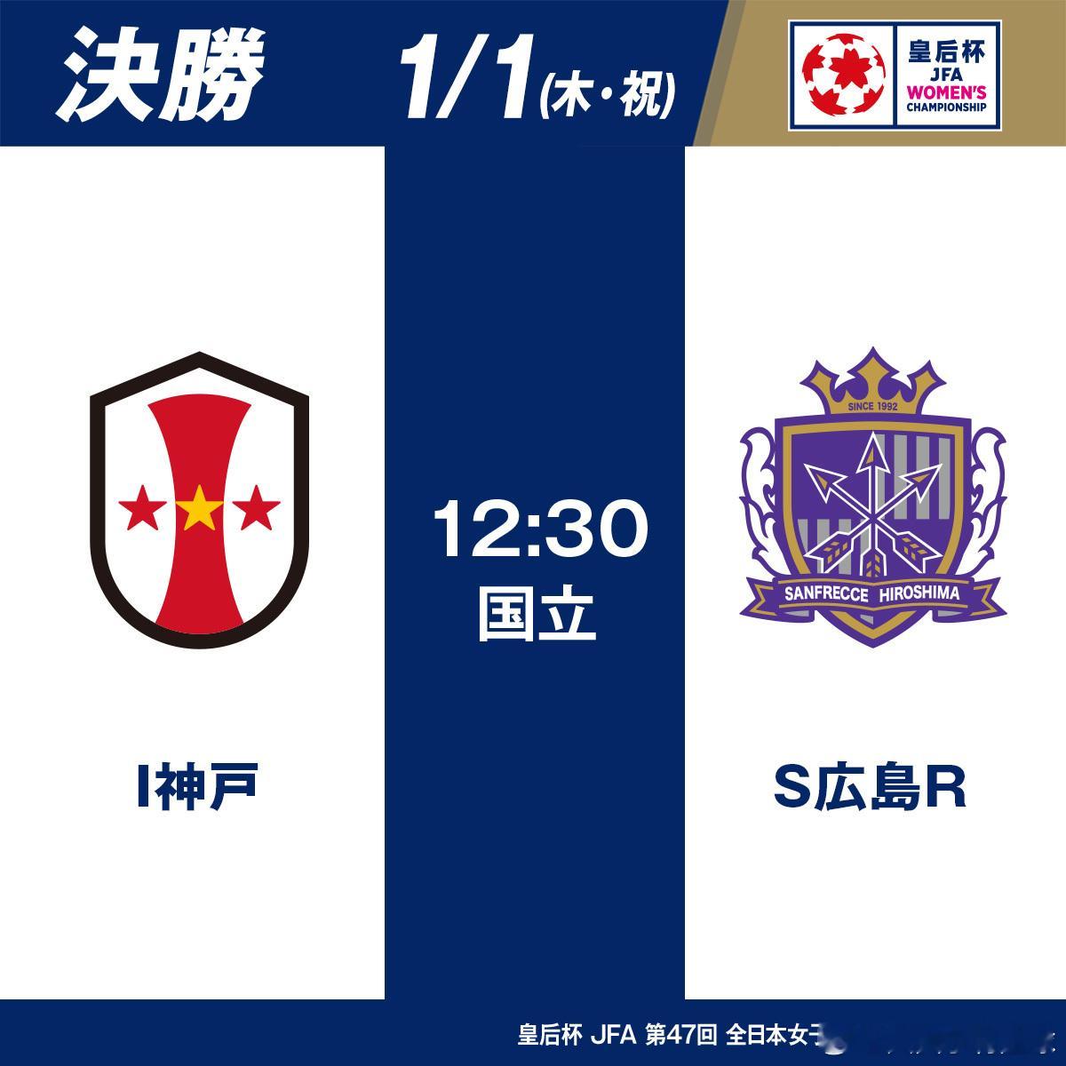 北京时间2026年1月1日(11:30开球),皇后杯JFA 第47回全日本女子サッカー選手権大会将在国立競技場举行,决赛两支球队中的 成员如下:🔴 INAC神戸Leonessa 🔴三宅史織,吉田莉胡,成宮唯 🟣 Sanfrecce広島REGINA 🐻中嶋淑乃,上野真実,市瀬千里,嶋田華