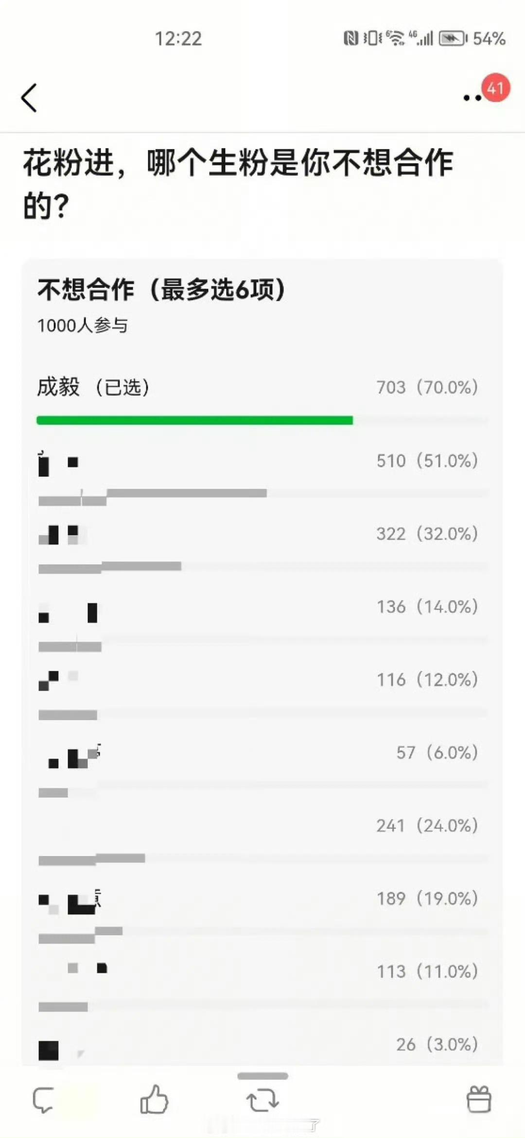 花粉最不愿意合作的男演员竟然是成毅,意料之中啊合作一个骂一个最近一个受害者李一桐粉丝最有发言权。没演技他的剧没人看,没有看导致扑,然后推给女主,合作过的女演员不都是最好的例子…不扛剧还事多