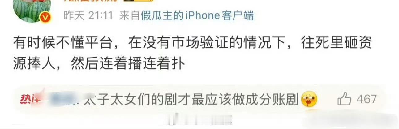 太子太女连扑,哪个太子太女连扑被平台退股了? 不扛剧又不扛招商…其实导演和编剧,问题更大。演员大部分只能锦上添花,很少有那种一个人能拯救整个剧组的!剧烂,多少大流量也救不了~我感觉像是说周翊然和包上恩🤔