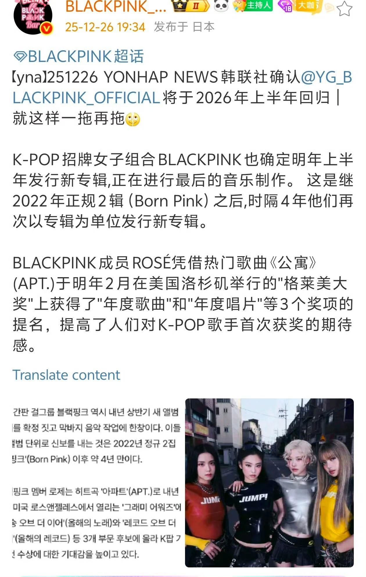 BLACKPINK一在的推迟回归,是等待朴彩英是否拿格莱美奖呢??拿到了 立马官宣回归的话,热度就来了到时候朴彩英采访在提火星哥,blink 还生气吗
