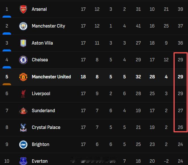 【曼联升上英超前五】曼联1比0纽卡斯尔联,凭借主场拿下三分,曼联在联赛积分榜暂时升上第5位,与少赛一场的切尔西和利物浦同积29分。英超联赛